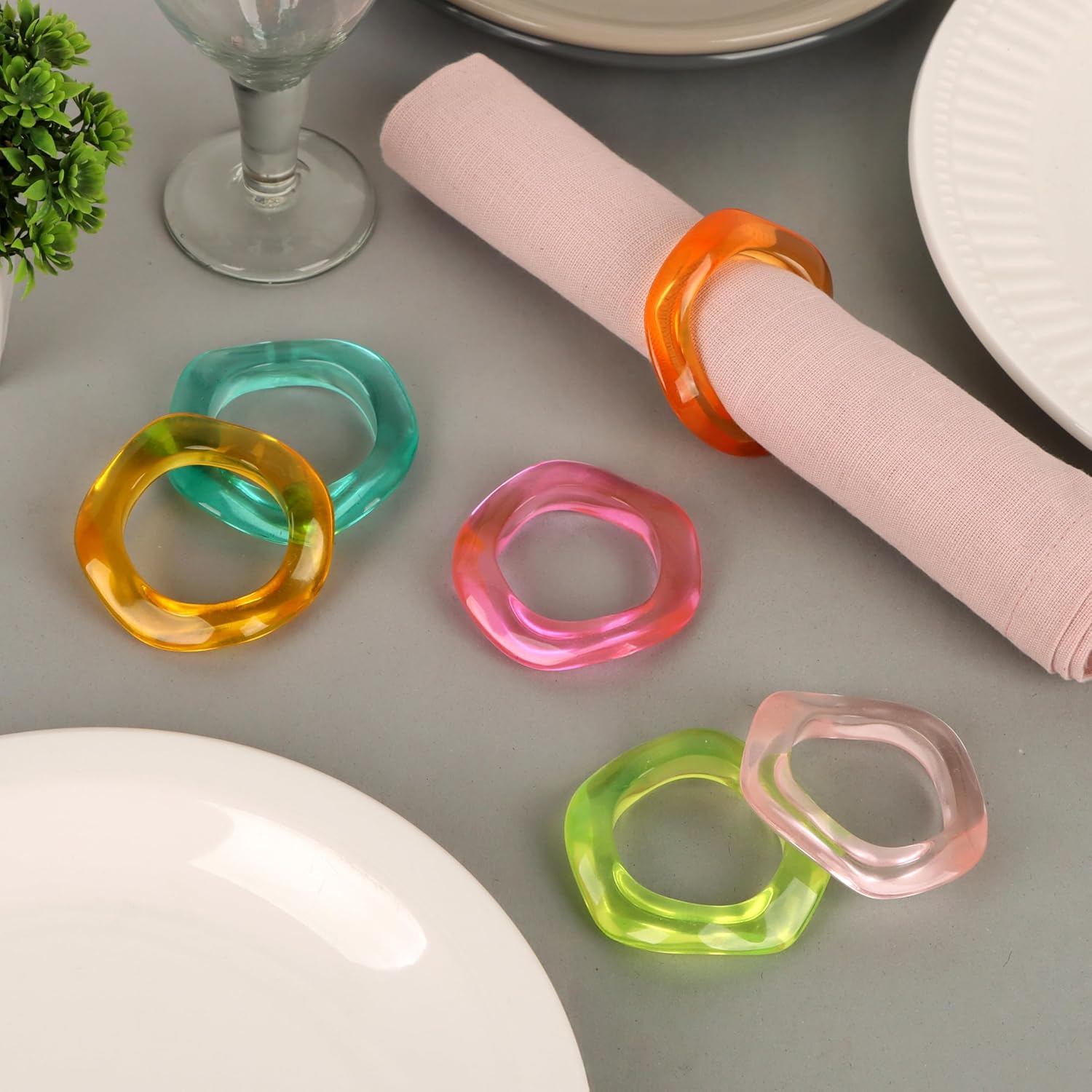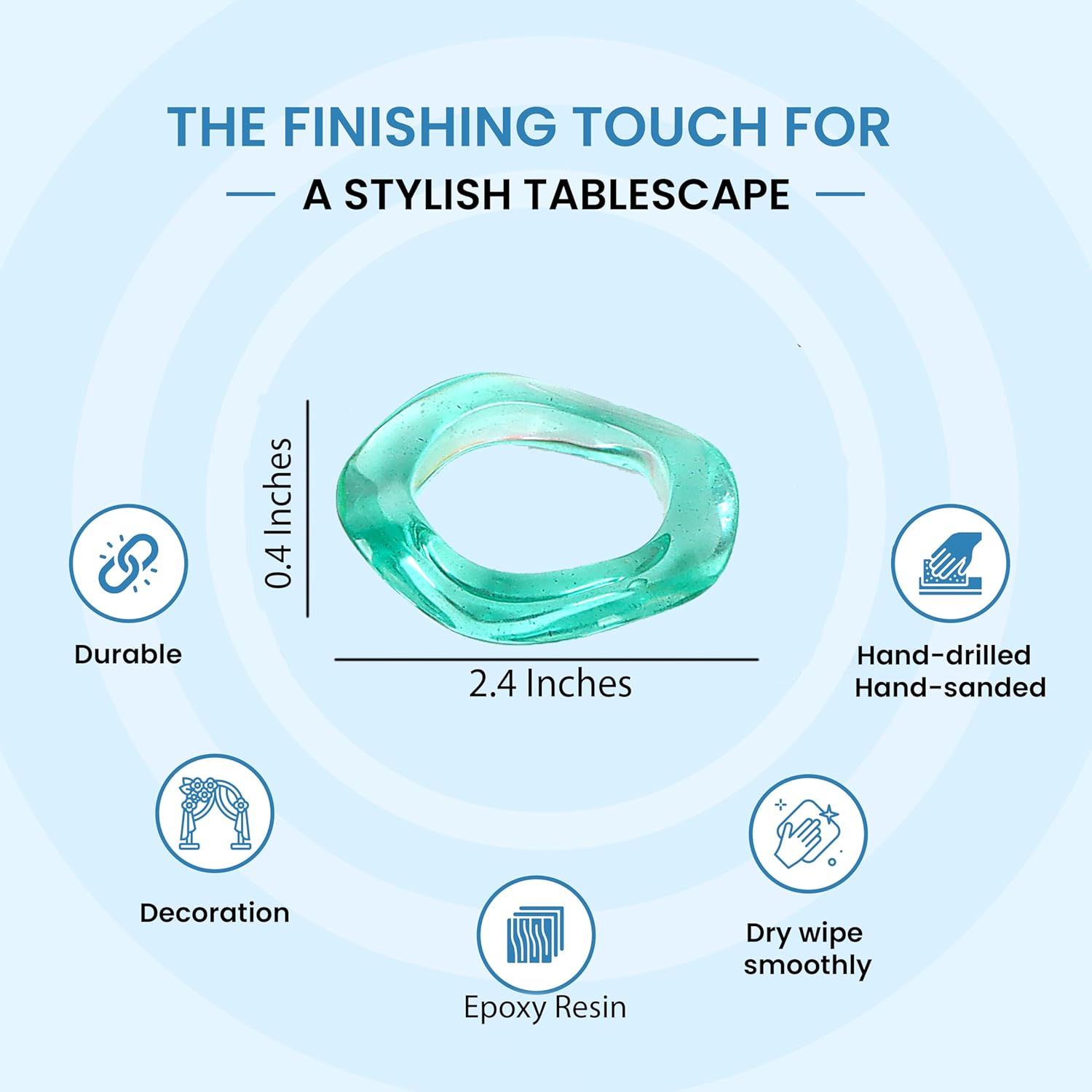 - ✅ COMPACT SIZE FOR TABLE SETTINGS: Includes 12 handcrafted epoxy resin napkin rings, each precisely sized at 2.5 x 2.5 x 0.5 inches. Perfect for standard cloth napkins, these rings enhance your table’s appearance with balance, elegance, and uniformity across every place setting.