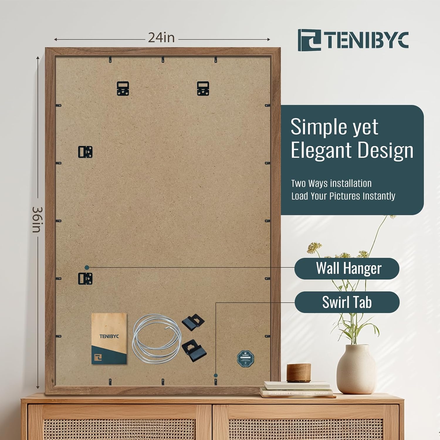 - 【Strong Practicality】Our walnut frame back panel is equipped with multiple hangers, so it can be displayed on the wall horizontally or vertically, perfectly adapting to 24x36 or 36x24 photos. Additionally, our unique spin-lock design ensures a swift and effortless setup