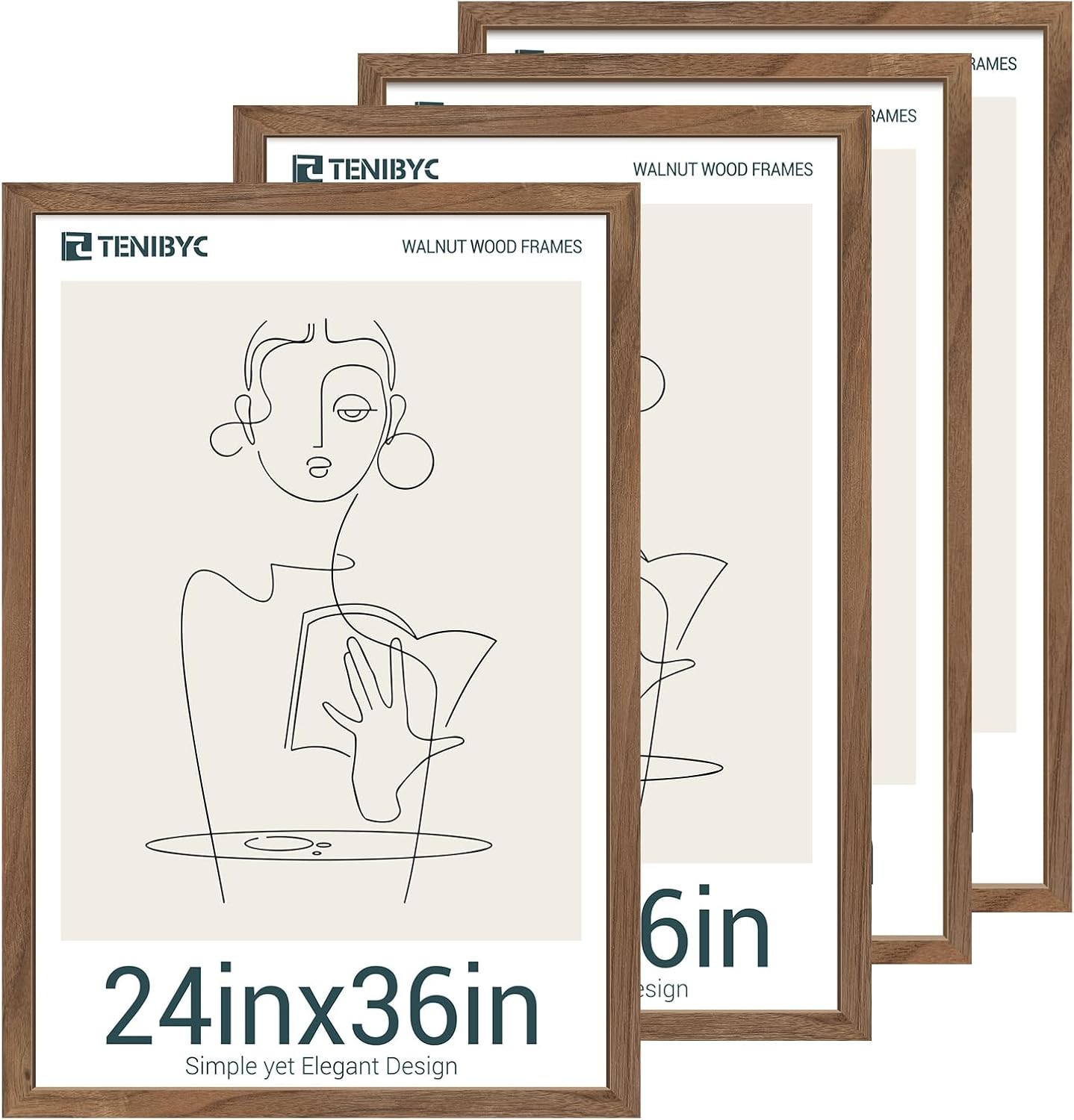24x36 Poster Frame 4 Pack, Brown Walnut Wood Picture Frame, Suitable for Photos, Puzzles, Paintings & Maps, Wall Hanging