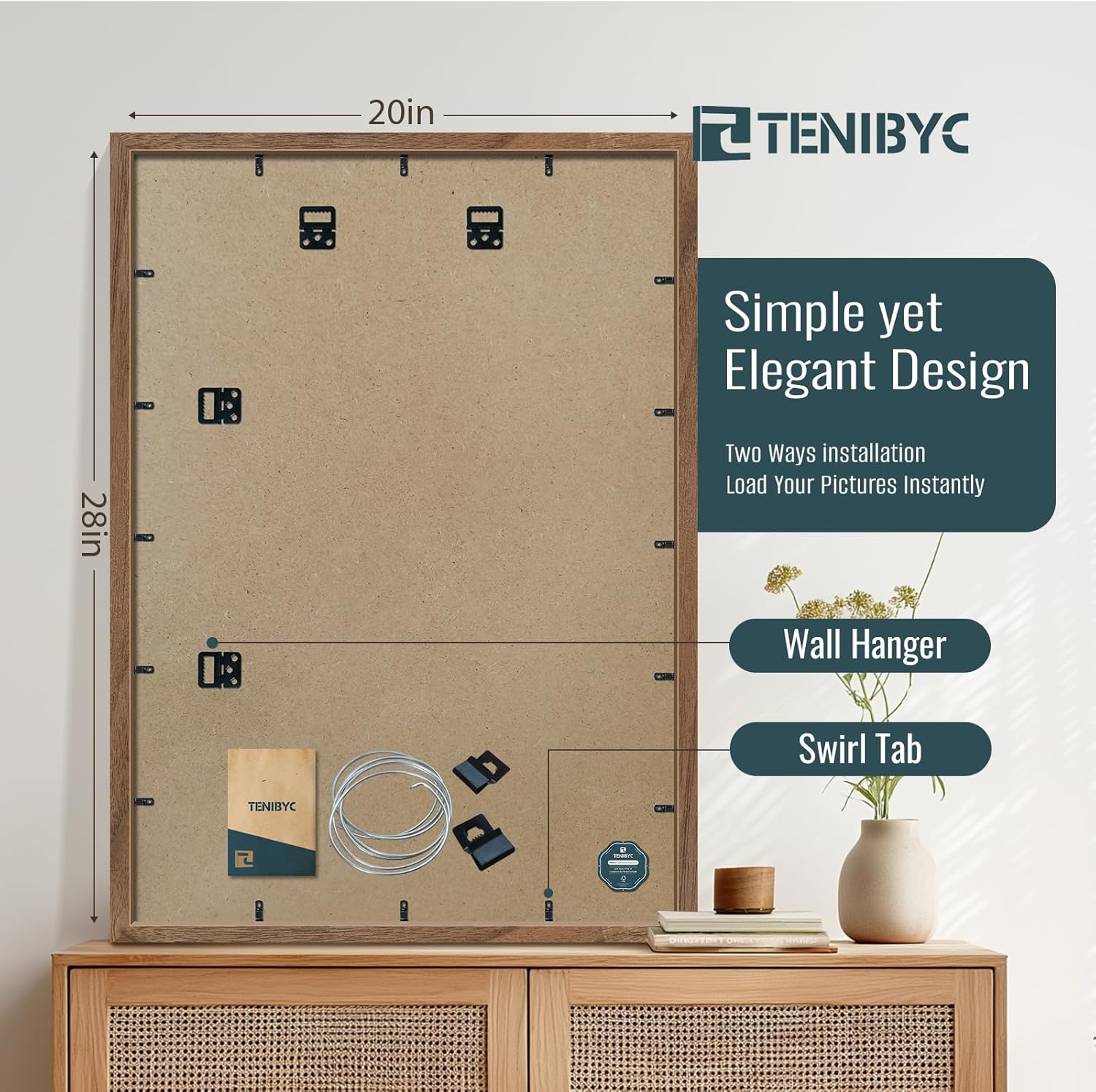 - 【Strong Practicality】Our walnut frame back panel is equipped with multiple hangers, so it can be displayed on the wall horizontally or vertically, perfectly adapting to 20x28 or 28x20 photos. Additionally, our unique spin-lock design ensures a swift and effortless setup