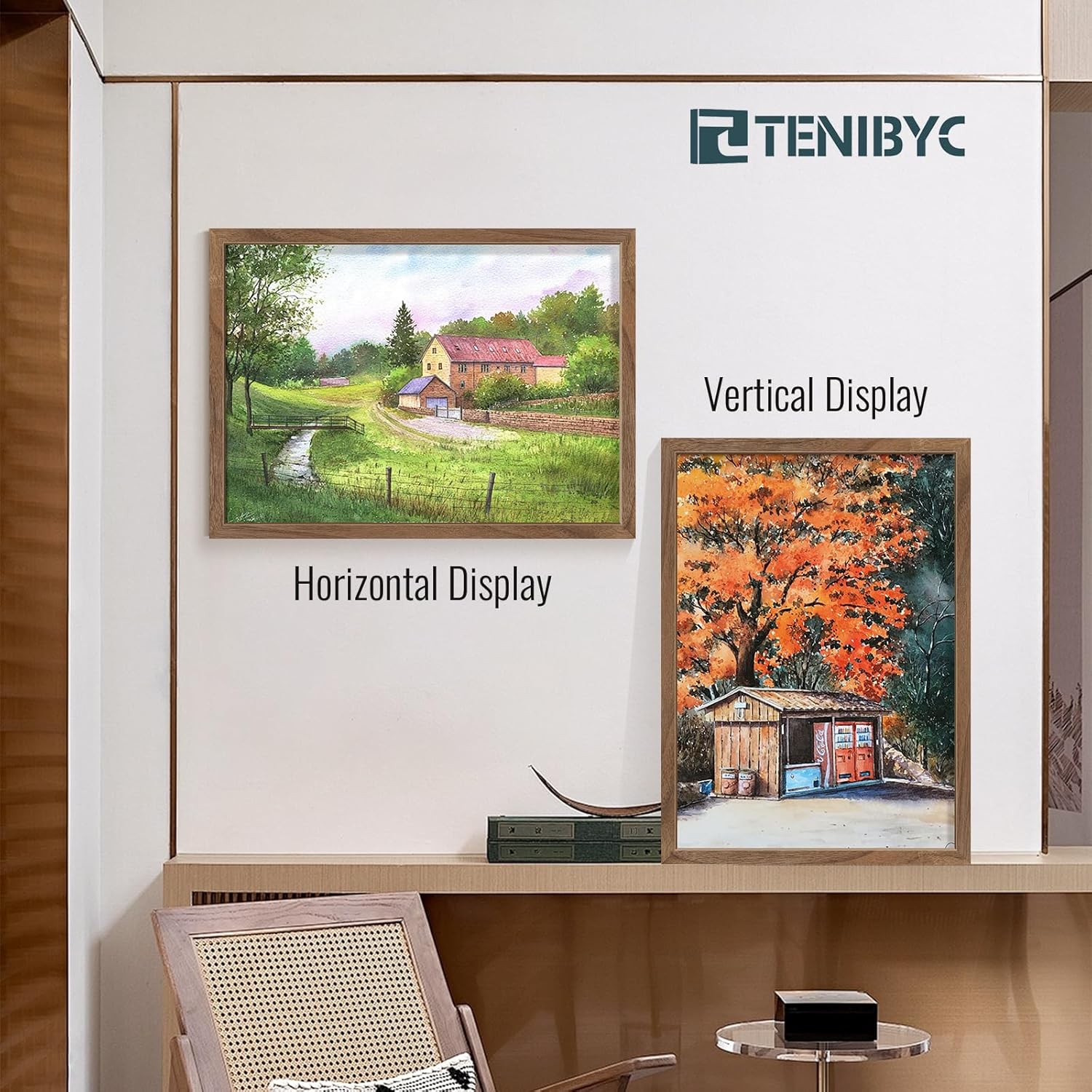 - 【Strong Ornamental Value】TENIBYC walnut frame, like a delicate painting endowed by nature. The color is a steady brown, embellished with dark or light black wood grain, which looks natural and elegant from afar, and exquisite and delicate up close