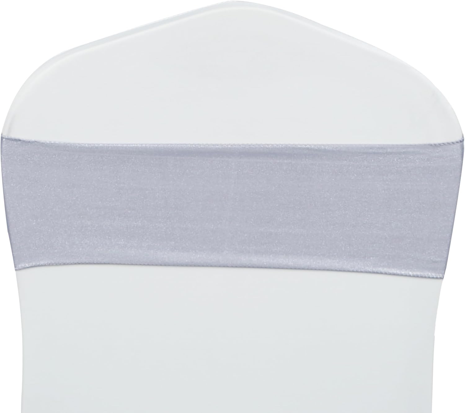 VDS Pack of 300 PCS | Metallic Silver | Spandex Chair Sashes Bows Without Buckle | Stretch Elastic Banquet Universal Folding Chair Bow Band for Wedding Party Conference Celebration Event Decoration