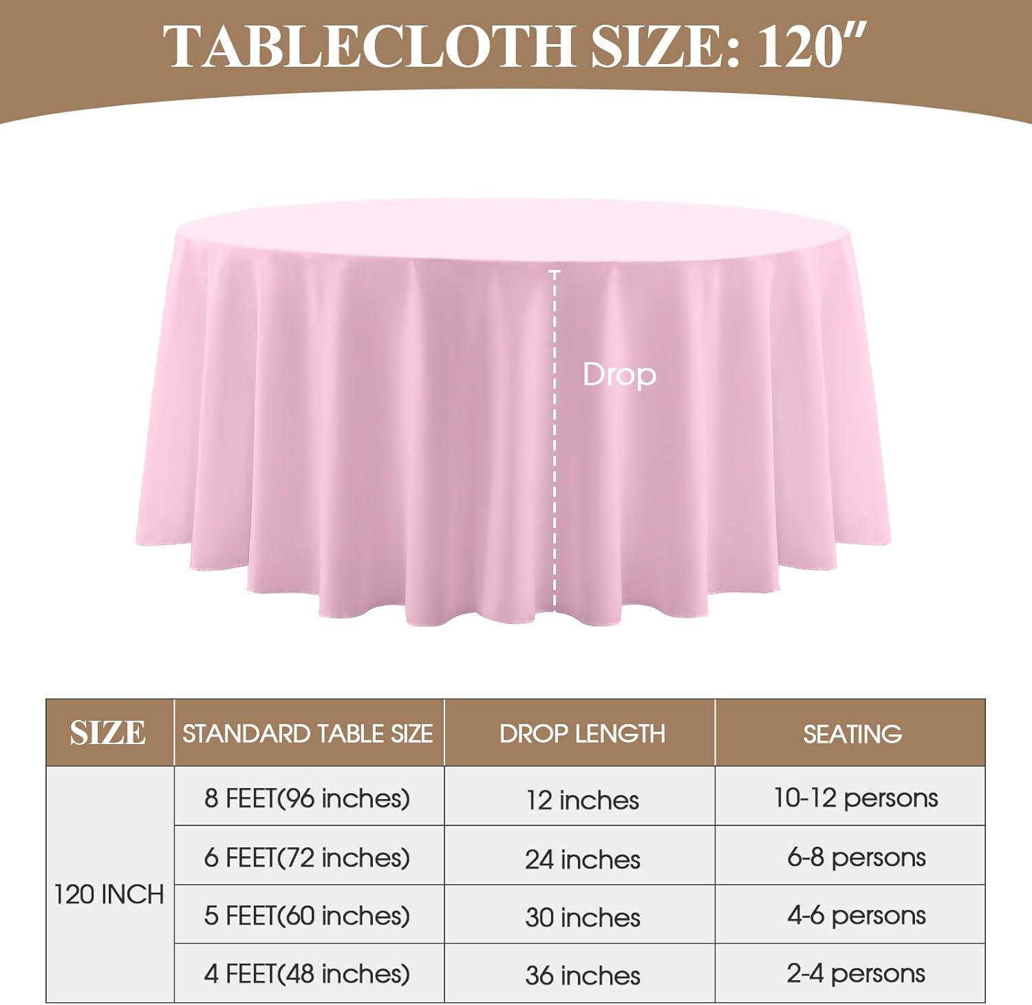 - Suitable Size: This polyester round tablecloth has multiple sizes to choose from, 90, 108, 120, 132 inches, which can meet the needs of tables of different sizes. In order to buy a tablecloth that is more suitable for your table, please measure the actual size of your table before purchasing and refer to our size chart