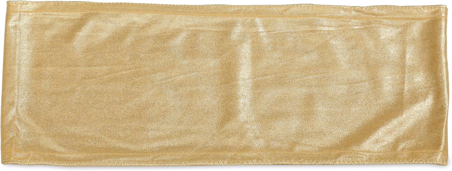 VDS Pack of 125 PCS | Metallic Gold | Spandex Chair Sashes Bows without Buckle | Stretch Elastic Banquet Universal Folding Chair Band Tie with for Wedding Party Conference Celebration Event Decoration