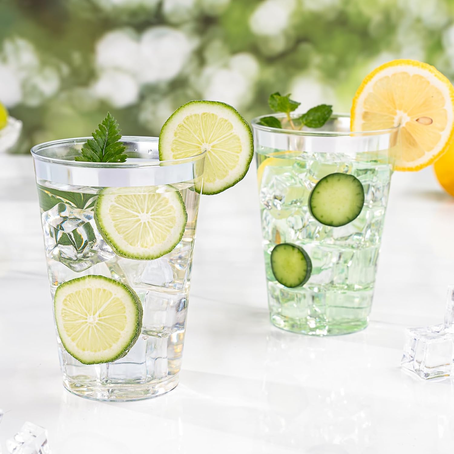 - Glamorous Design: These clear cups with silver rim are a real treat! These gold plastic cups add a touch of glamour to any party or family gathering. Perfect for making your drinks look extra special