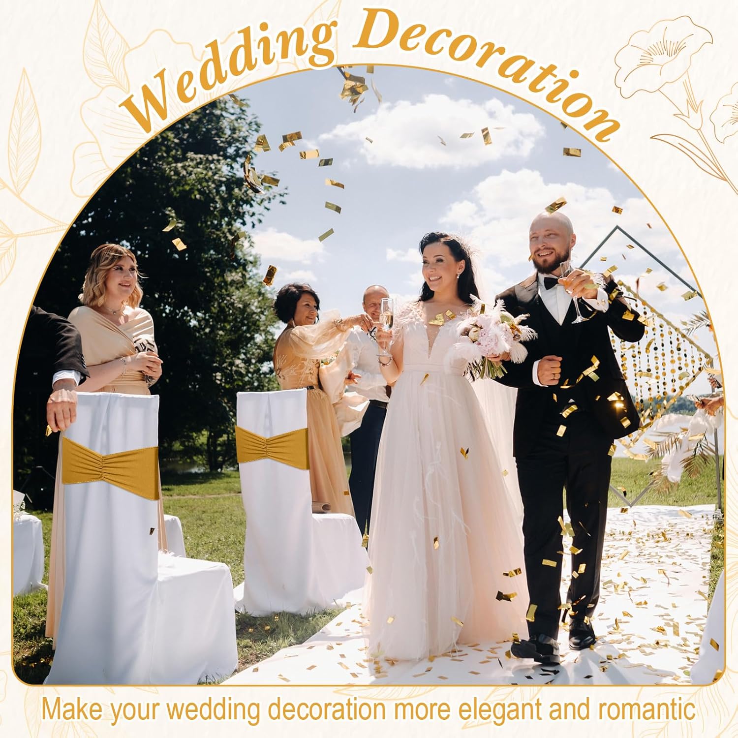 Moukeren 100 Pcs Spandex Chair Sashes Bows Bands Slider Sashes for Chair Covers Elastic Bands Ties Ribbon Decorations for Wedding Party Events Ceremony Birthday Banquet(Gold)