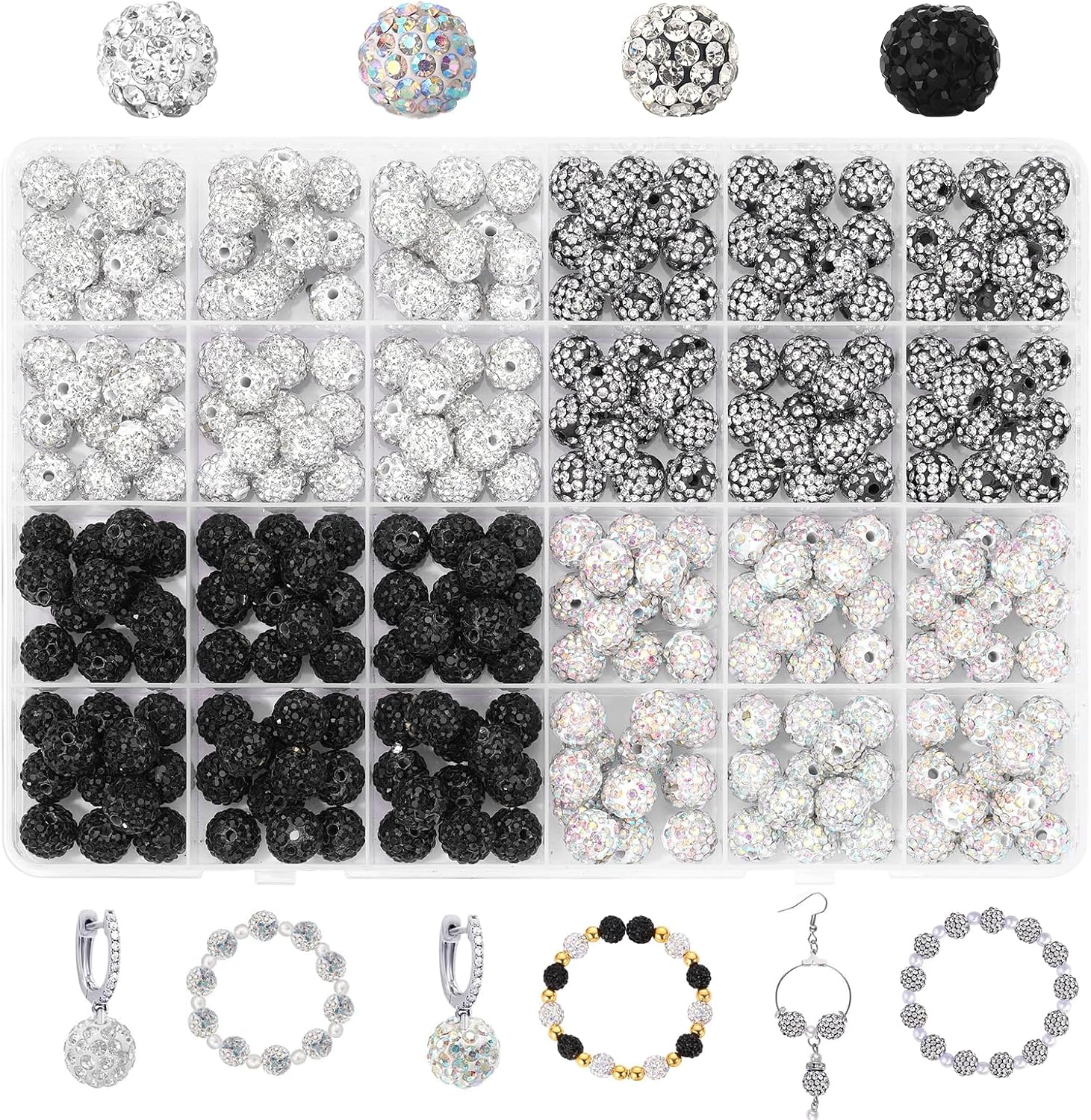 - UNIFORM RHINESTONE BALLS: Round clay beads are decorated with six rows of full diamonds, and high-quality glass rhinestones are evenly distributed on the surface of the sphere, giving the overall visual layering of the beads. The beautifully shaped clay rhinestone beads are as colorful as disco balls, making the handmade jewelry richer.