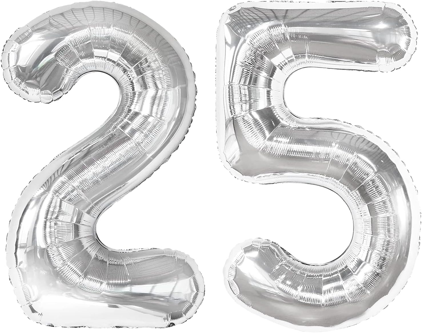 - 1.Elegant Understated Silver Number Balloons: You will receive an uninflated silver 40 inch number 25 balloon. Balloons are always the best statement of romance and surprise. Silver balloons symbolize vitality and exoticism, adding glamour to birthday parties. Bright metallic silver and huge size make silver balloon a highlight of special parties. Choose one or more numbers from 0-9 number balloon, and use 25 balloons number to create a lively and charming party!