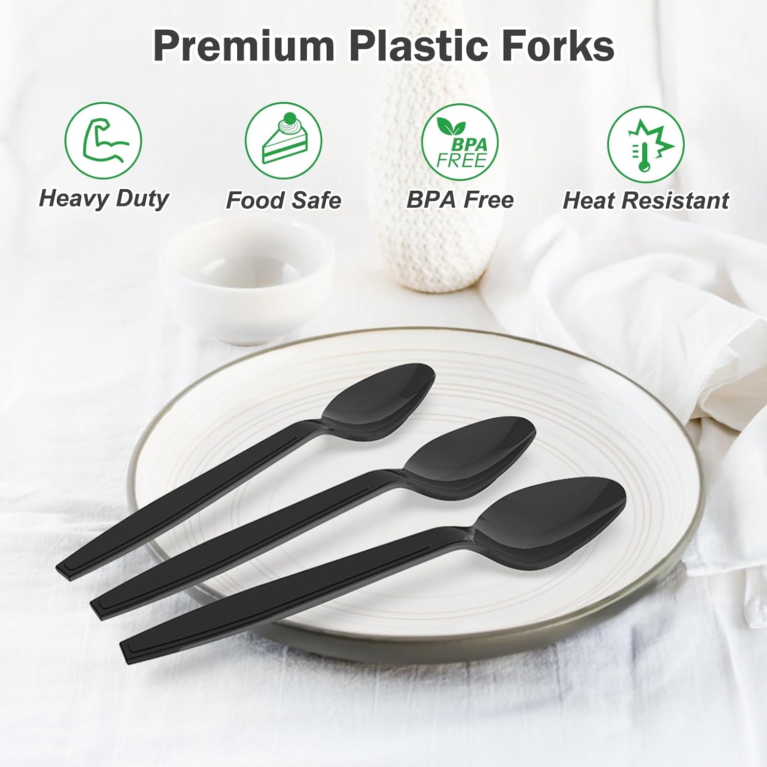 - 【Premium Material】: Dealusy black plastic spoons disposable are made of food grade polystyrene, total BPA free and toxin free for your healthy meals.