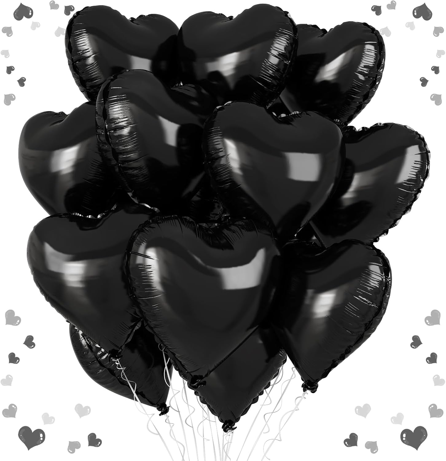 - Charming Black Heart Balloons: Elevate your celebration with our set of 12 heart-shaped black balloons, each measuring 18 inches. Accompanied by a ribbon, these balloons are ideal for creating a festive and loving atmosphere at any special event.