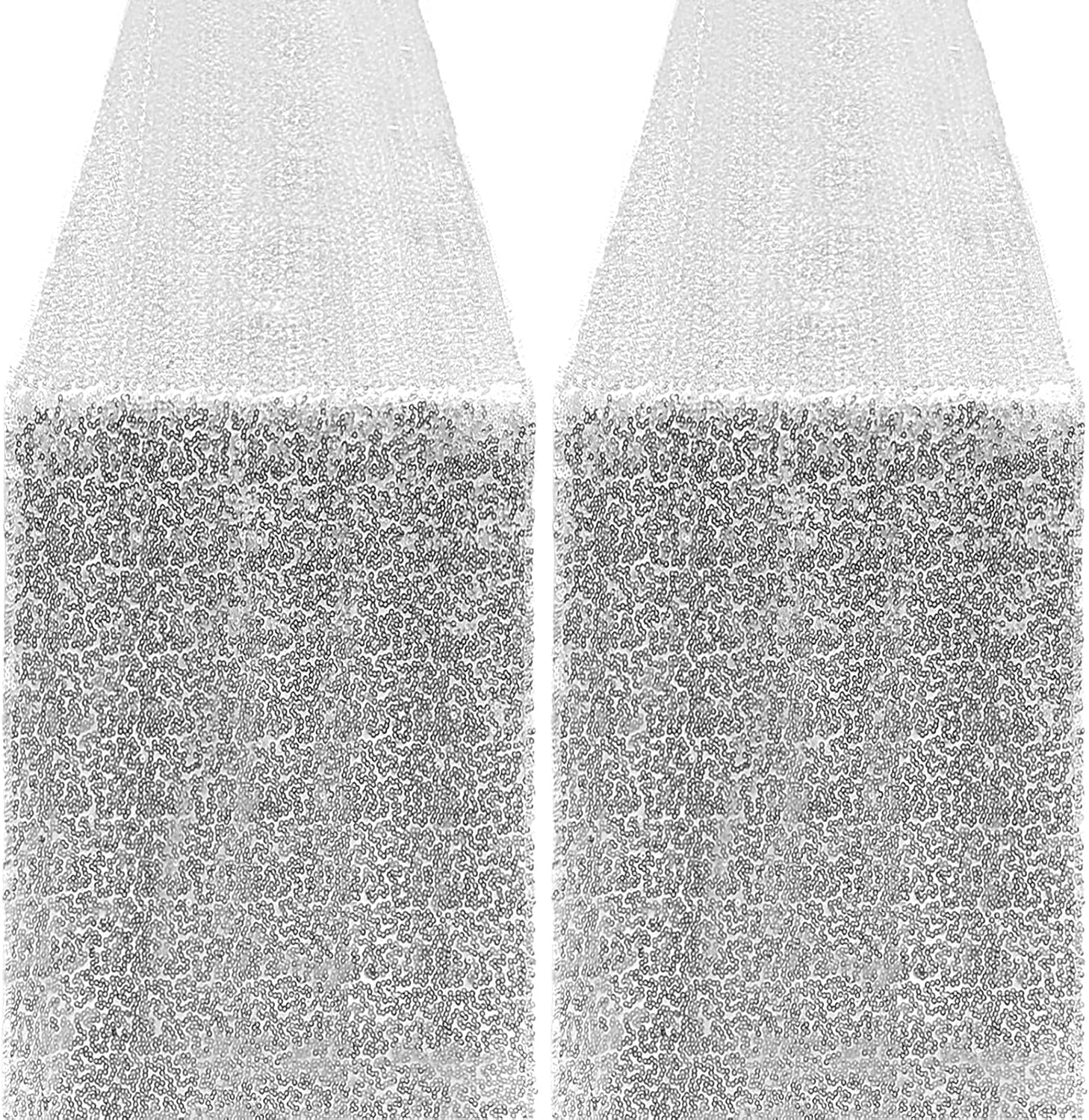 2 Packs 12 x 72 inches Sequin Table Runner, Silver Glitter Table Runner for Birthday Party Supplies Wedding Engagement Baby Shower Holiday Celebration Event Decorations