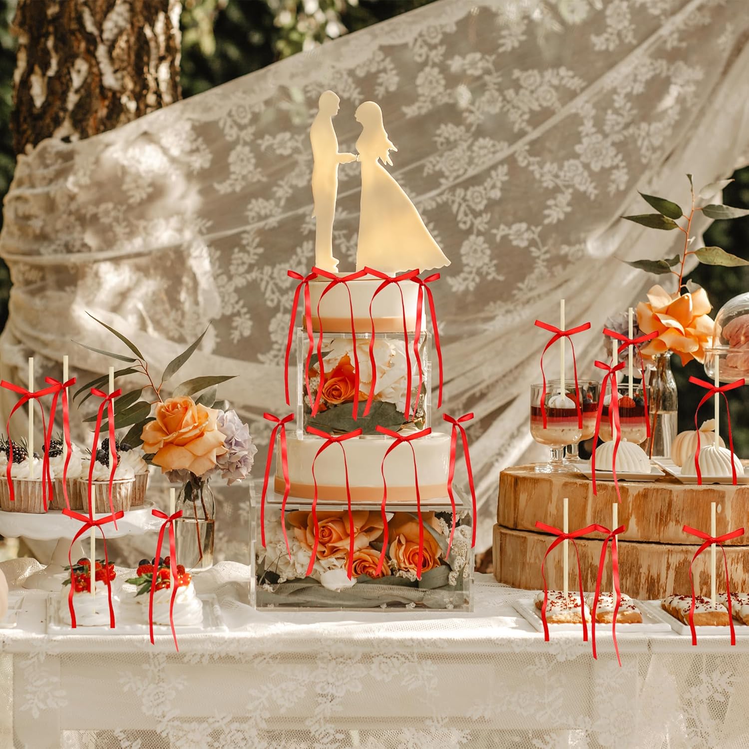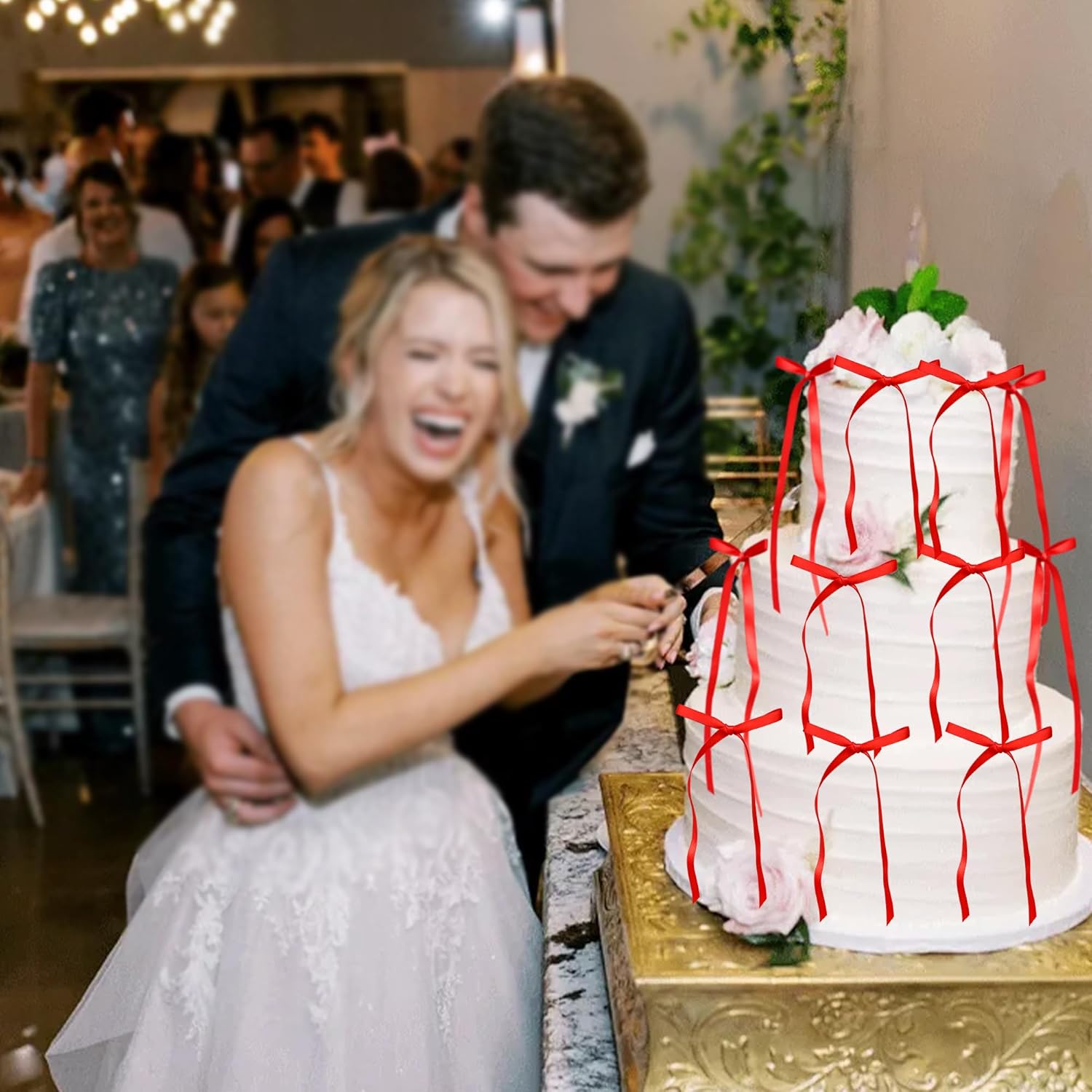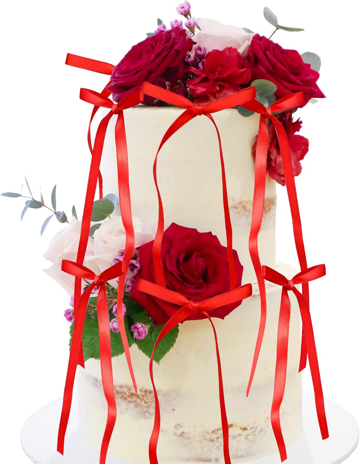 Ephlyn 30Pcs Bow Cupcake Toppers Valentine's Bowknot Ribbons Coquette Bow High Footed Cup Balloon Wall Party Decorations Cake Dessert Picks Baby Girl Birthday Wedding Party Supplies Red