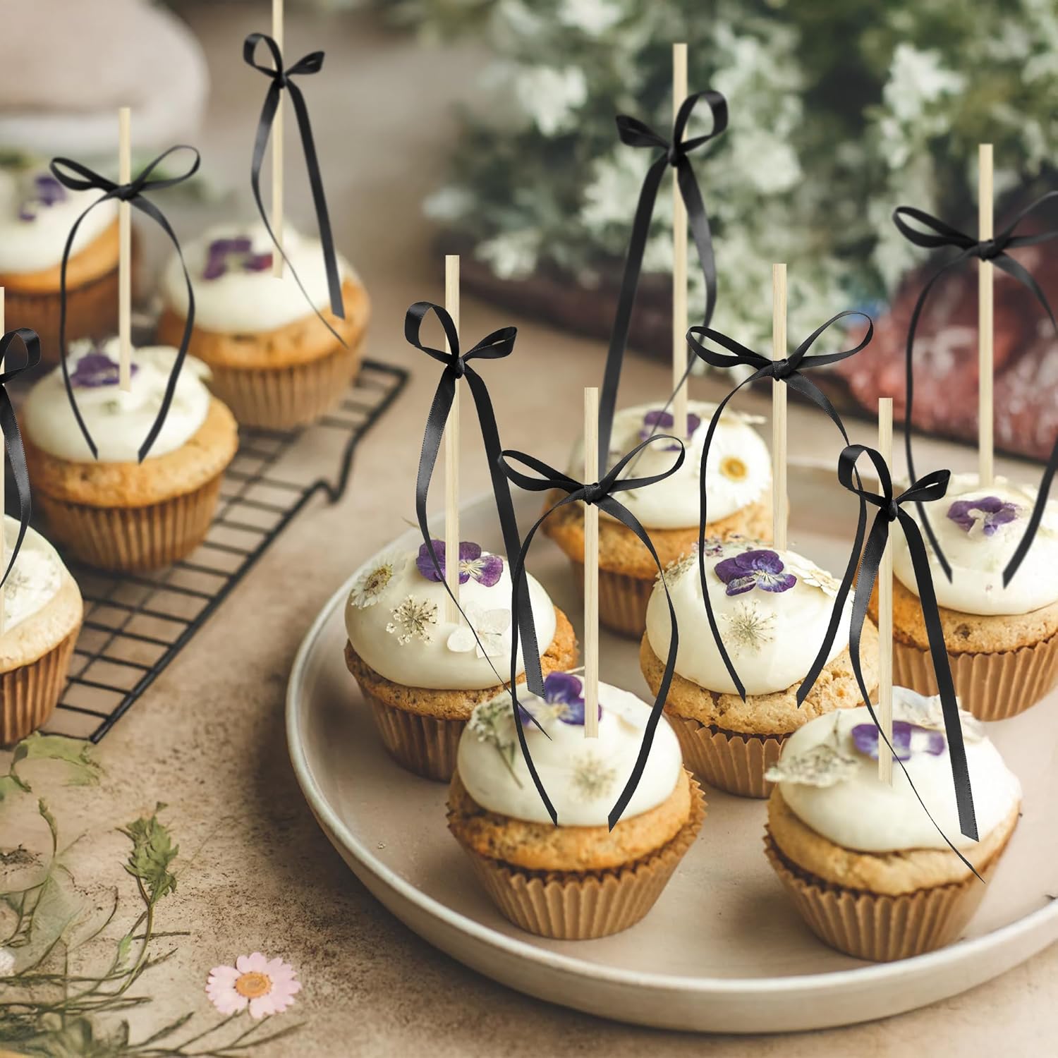 - 【NO Required】: Bow Cupcake Toppers can put in the cake directly! These Bow Cupcake Toppers saves your time and super easy to use. You can easily dress up your cakes, yes! but don't stop there, put them into desserts, cookies, fruit pieces, appetizers, muffins and so much more!