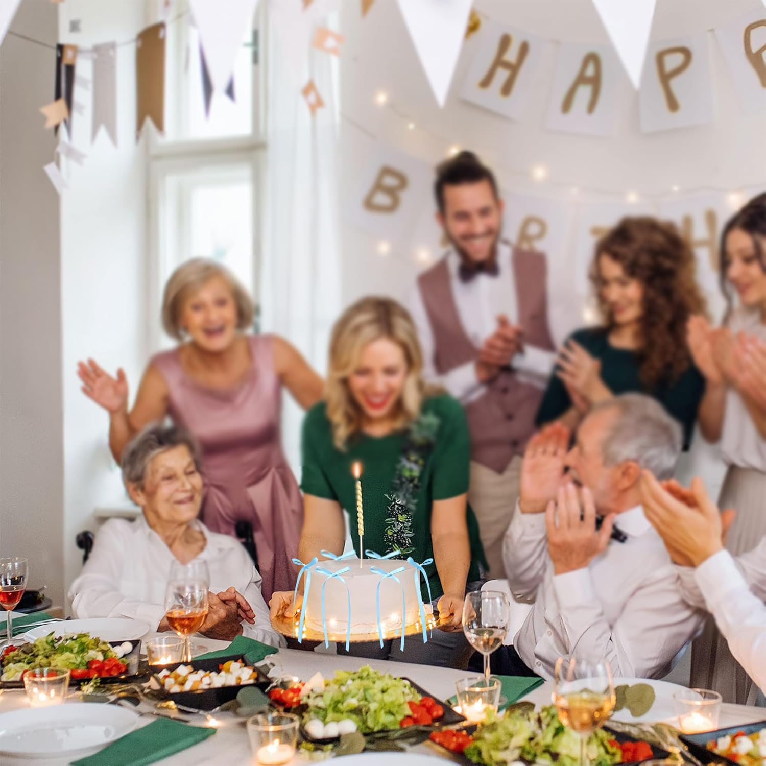 Ephlyn 30Pcs Bow Cupcake Toppers Valentine's Bowknot Ribbons Coquette Bow High Footed Cup Balloon Wall Party Decorations Cake Dessert Picks Baby Girl Birthday Wedding Party Supplies Lake Blue