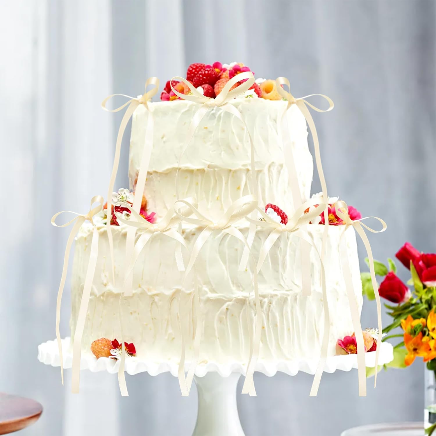 Ephlyn 30Pcs Bow Cupcake Toppers Valentine's Bowknot Ribbons Coquette Bow High Footed Cup Balloon Wall Party Decorations Cake Dessert Picks Baby Girl Birthday Wedding Party Supplies Beige