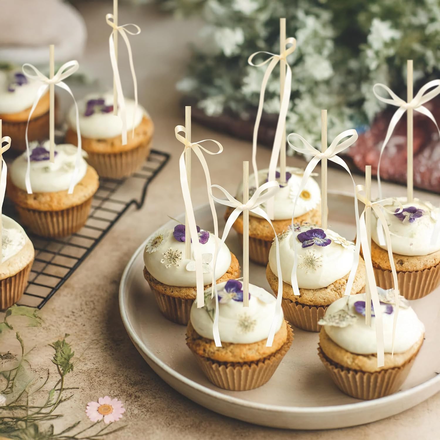 - 【NO Required】: Bow Cupcake Toppers can put in the cake directly! These Bow Cupcake Toppers saves your time and super easy to use. You can easily dress up your cakes, yes! but don't stop there, put them into desserts, cookies, fruit pieces, appetizers, muffins and so much more!