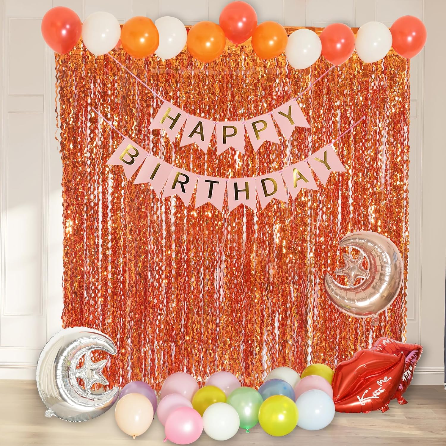 - Easy to Use: The orange foil curtain backdrop has double-sided tape on the top of the back,please peel tape off would be very easy to paste on smooth surfaces such as wall,window,table,door or anywhere you like