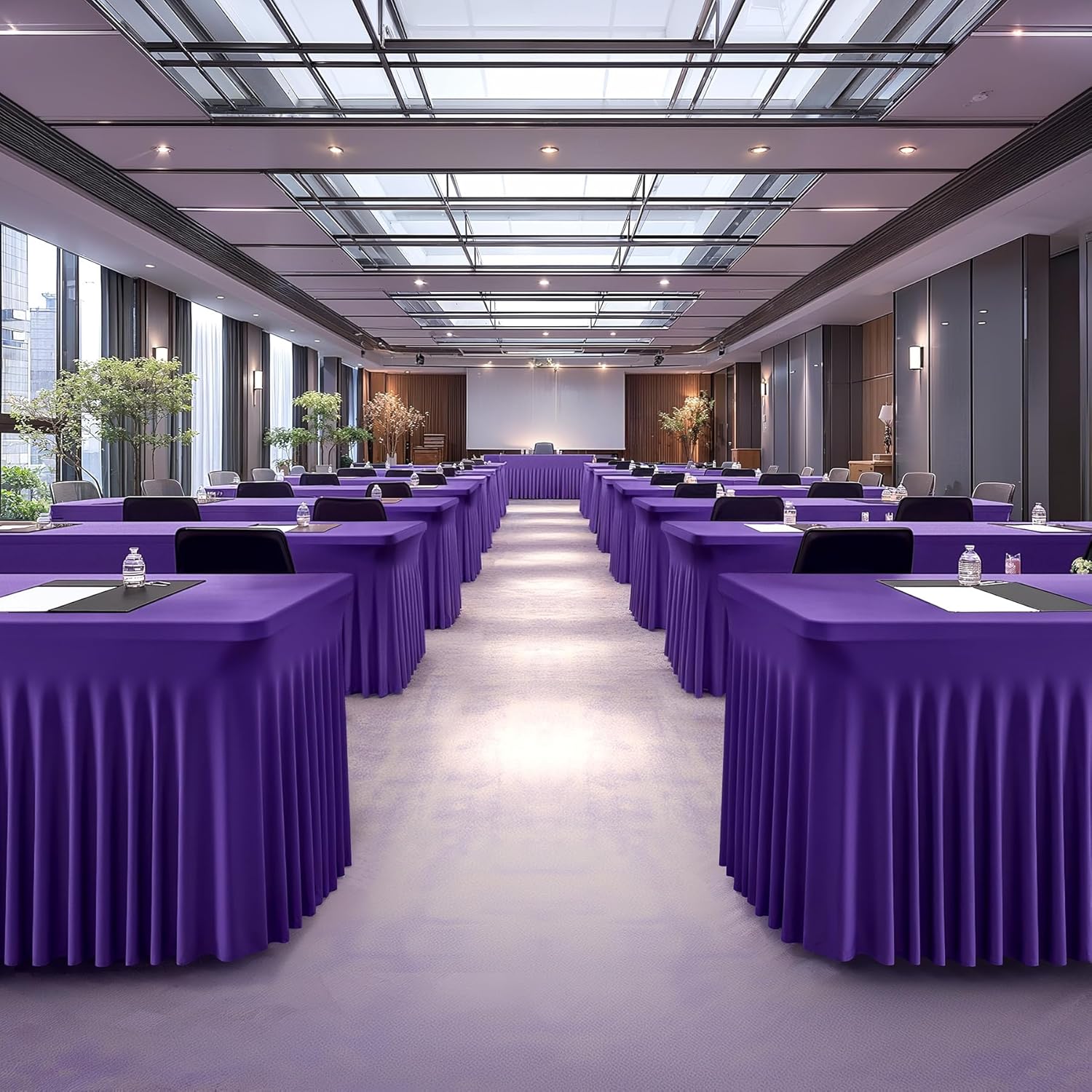 - 【Fitted Tablecloth Package】- 6 Piece Spandex Table Covers. Material: High Quality Wrinkle Free and Stretchy Fabric. Color: Dark Purple. Size: 96"L X 30"W X 29"H. Fitted for 8 foot rectangle tables. Change your table into a new look in few seconds with our tablecloths