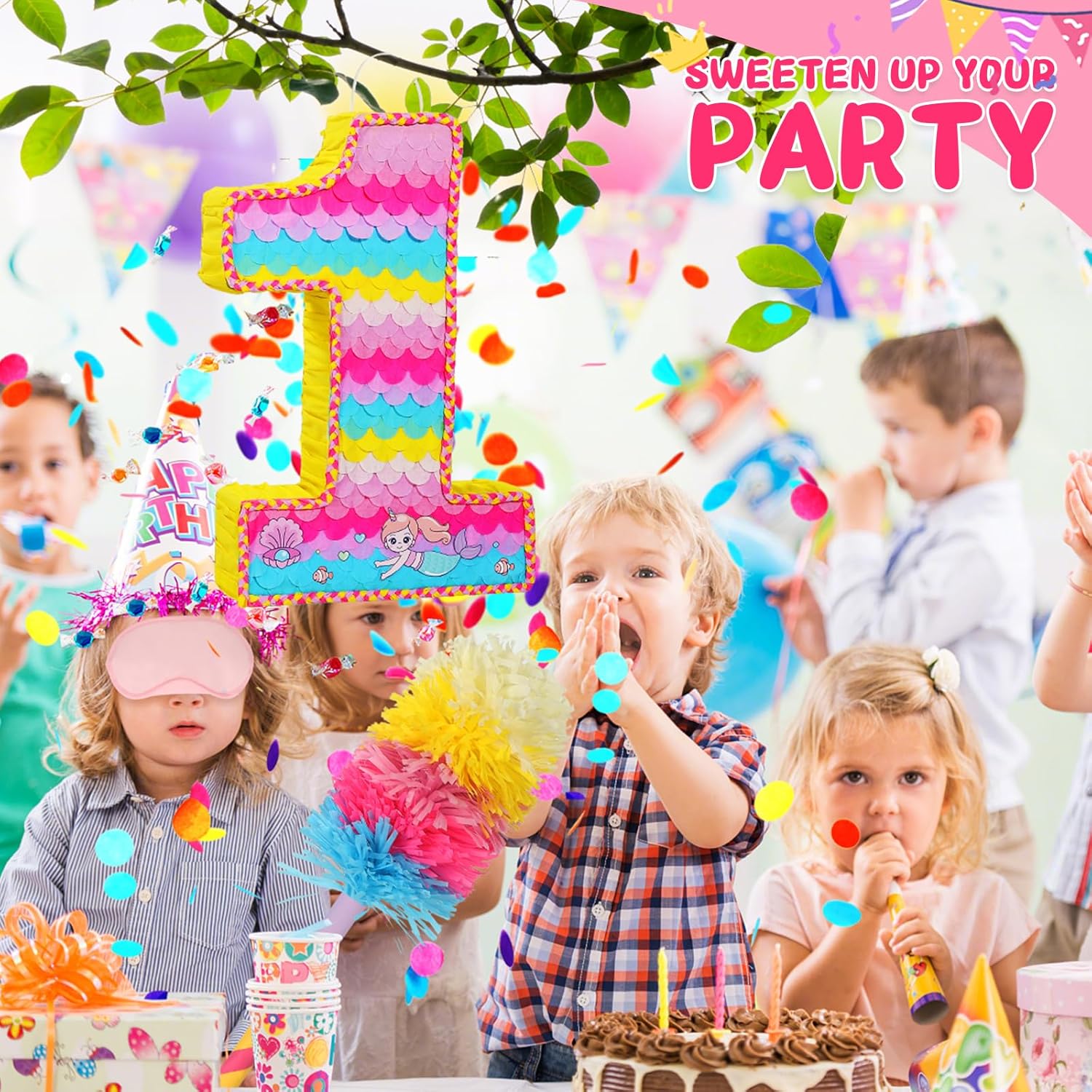 Number 1 Pinata for Birthday Party Decorations, Unicorn Mermaid Theme Pink Piñata Games Toy (1th)