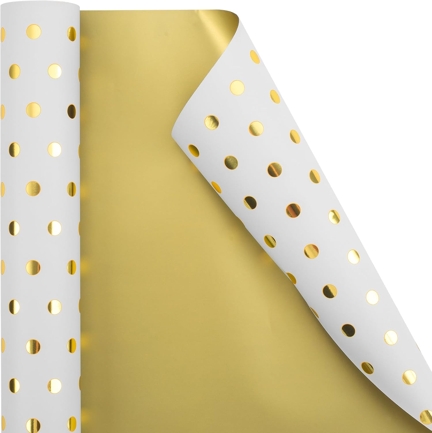 - Reversible Design: The gift wrap is the special gold foil polka dot and suitable for all kinds of packaging.One side features dazzling gold foil polka dots that catch every eye, while the reverse offers a soft, elegant gold—perfect for crafting hand-wrapped gifts that stand out.