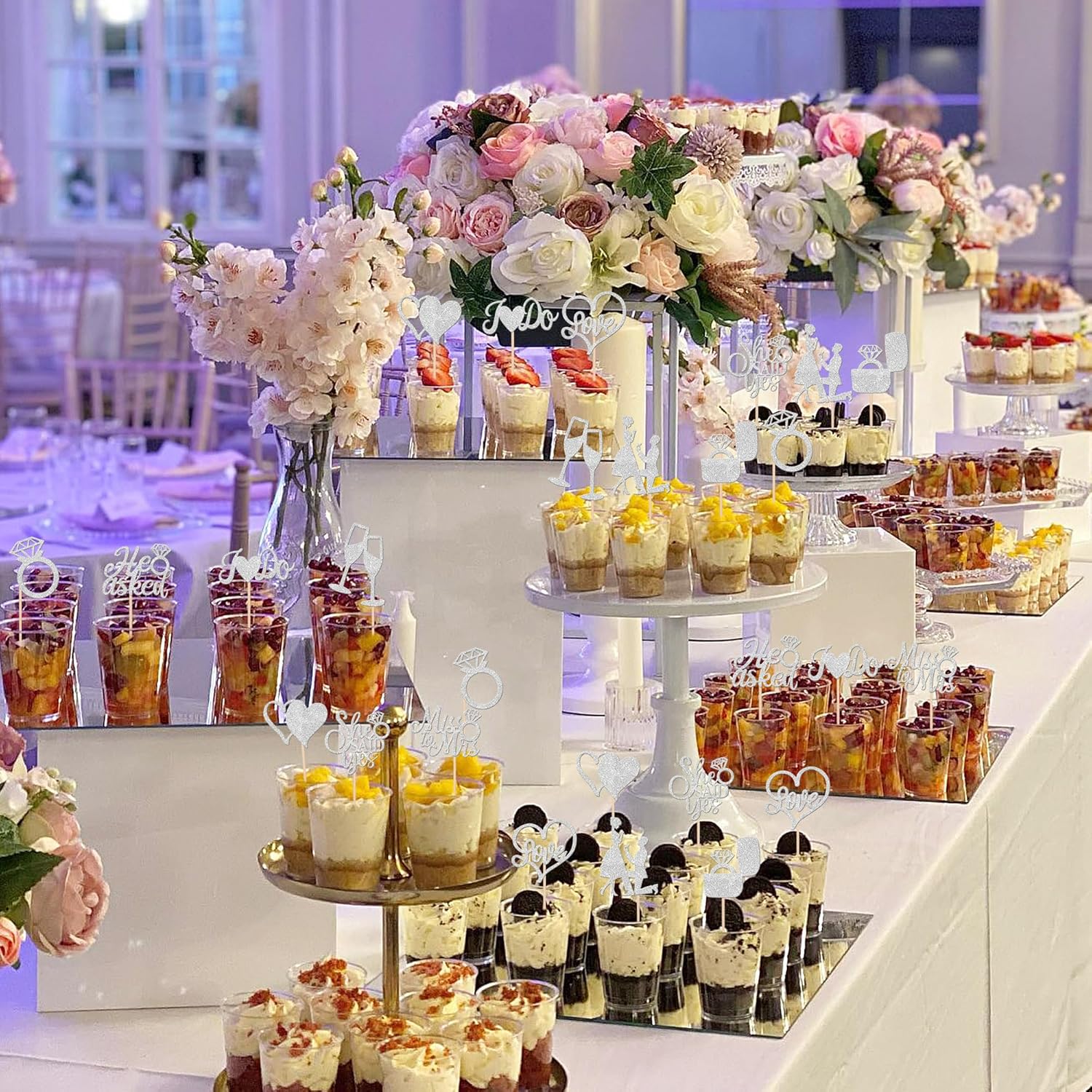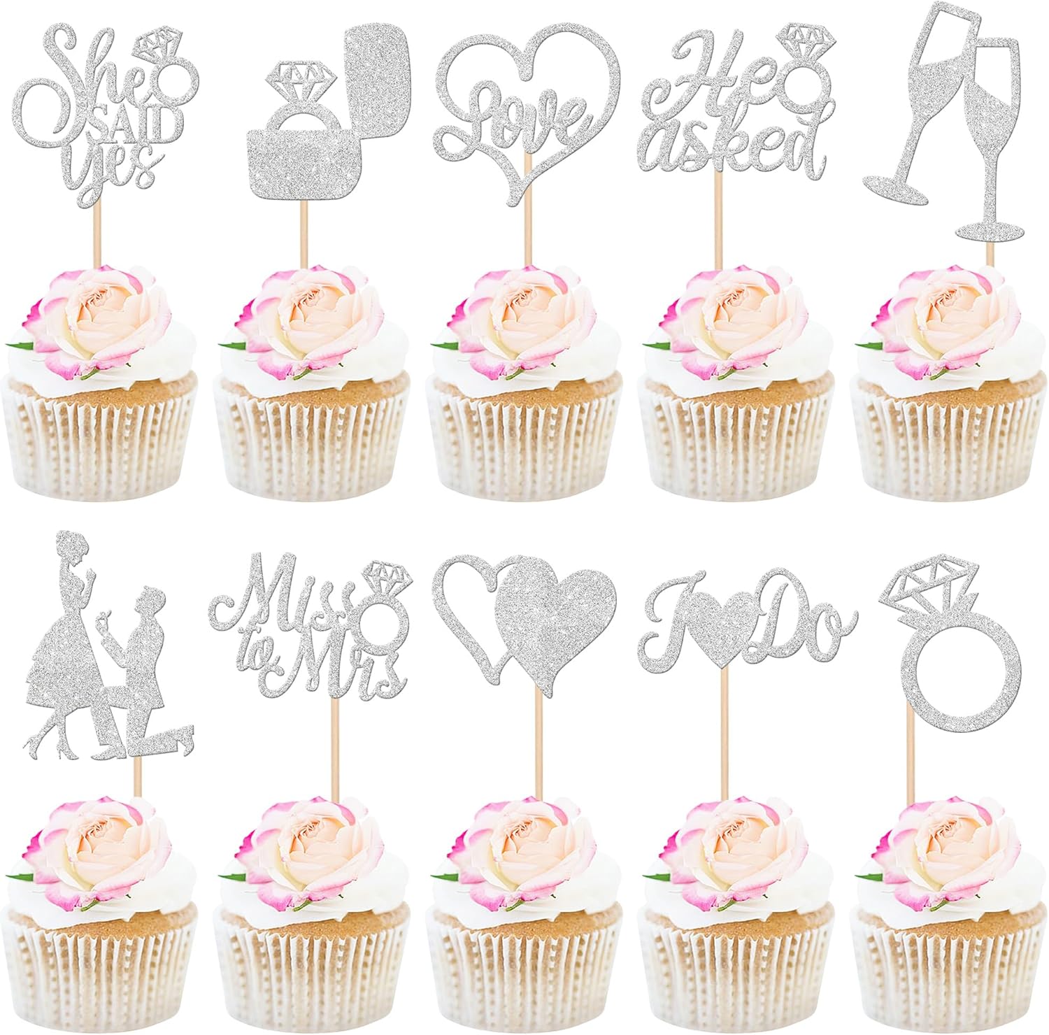 - Wide Usages ! These he asked she said yes cupcake toppers are perfect for wedding engagement theme party, he asked she said yes theme party, bridal shower theme party, miss to mrs love theme party, bachelorette theme party cupcake decorations, they can make your cupcake more attractive and bring the fun to your party.You can also apply them for ice cream, fruits, cookies and other desserts.