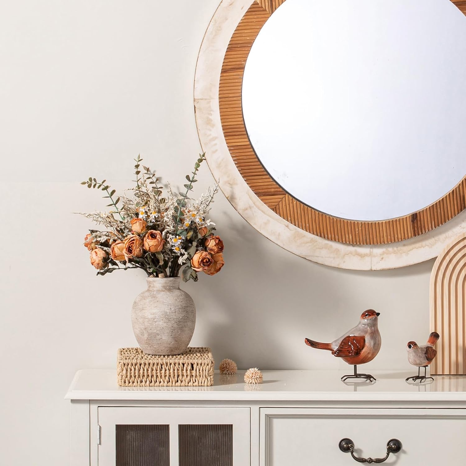 - 【Handcrafted & Rich in Texture】Featuring intricate detailing and a rich texture, this vase complements a variety of home styles—farmhouse, rustic, country, even modern. It effortlessly blends in with existing furniture and accessories, adding a timeless charm and harmonious look to your space. (Note: Each piece is hand-finished, so slight variations in texture make every vase unique.)