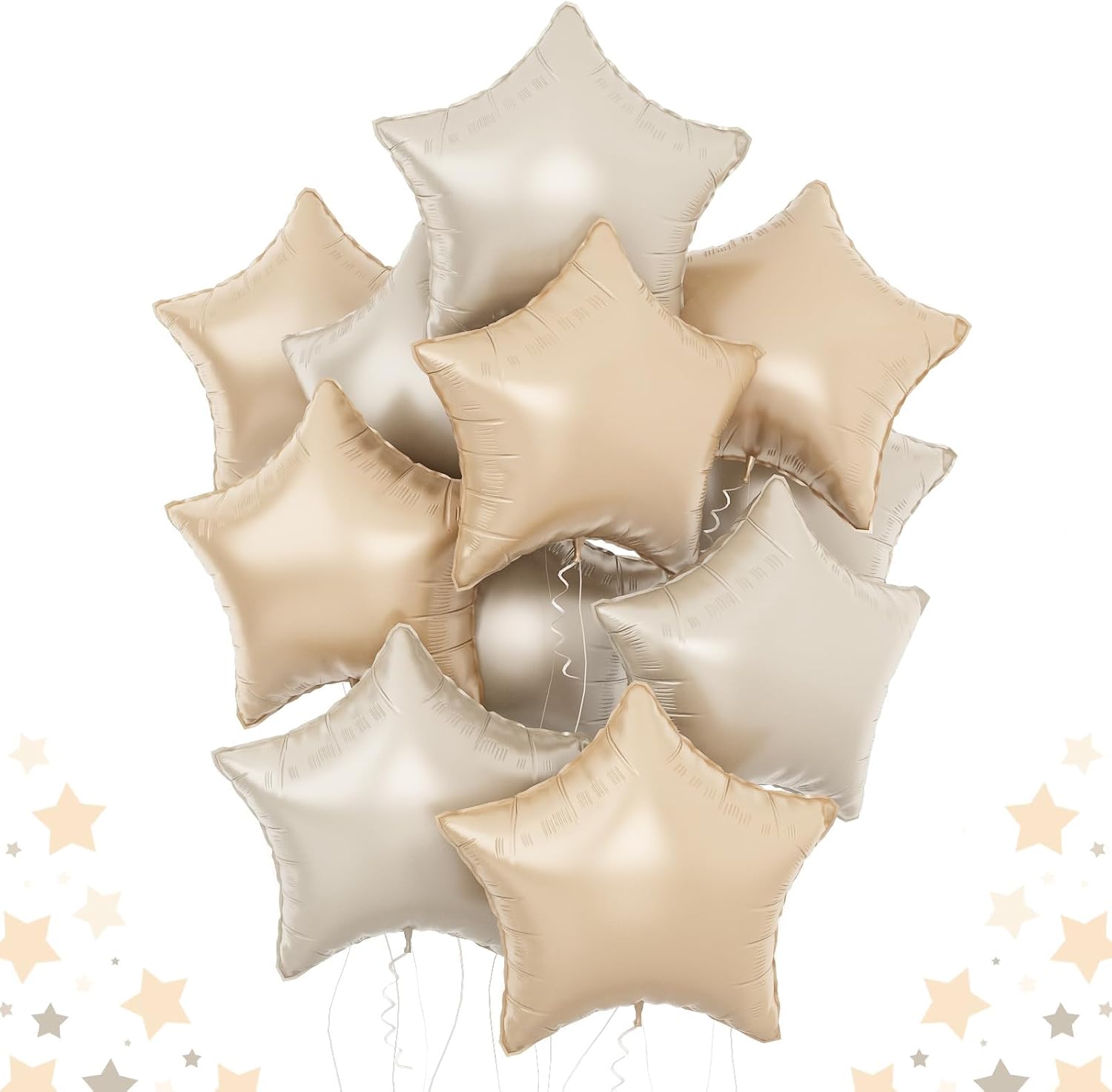 Cream Star Balloons, 18Inch Caramel Cream Stars Shape Foil Balloons, 12Pcs Beige Neutral Pentagram Foil Helium Balloon for Boho Party Girls Women Birthdays Wedding Bridal Baby Shower Party Decor