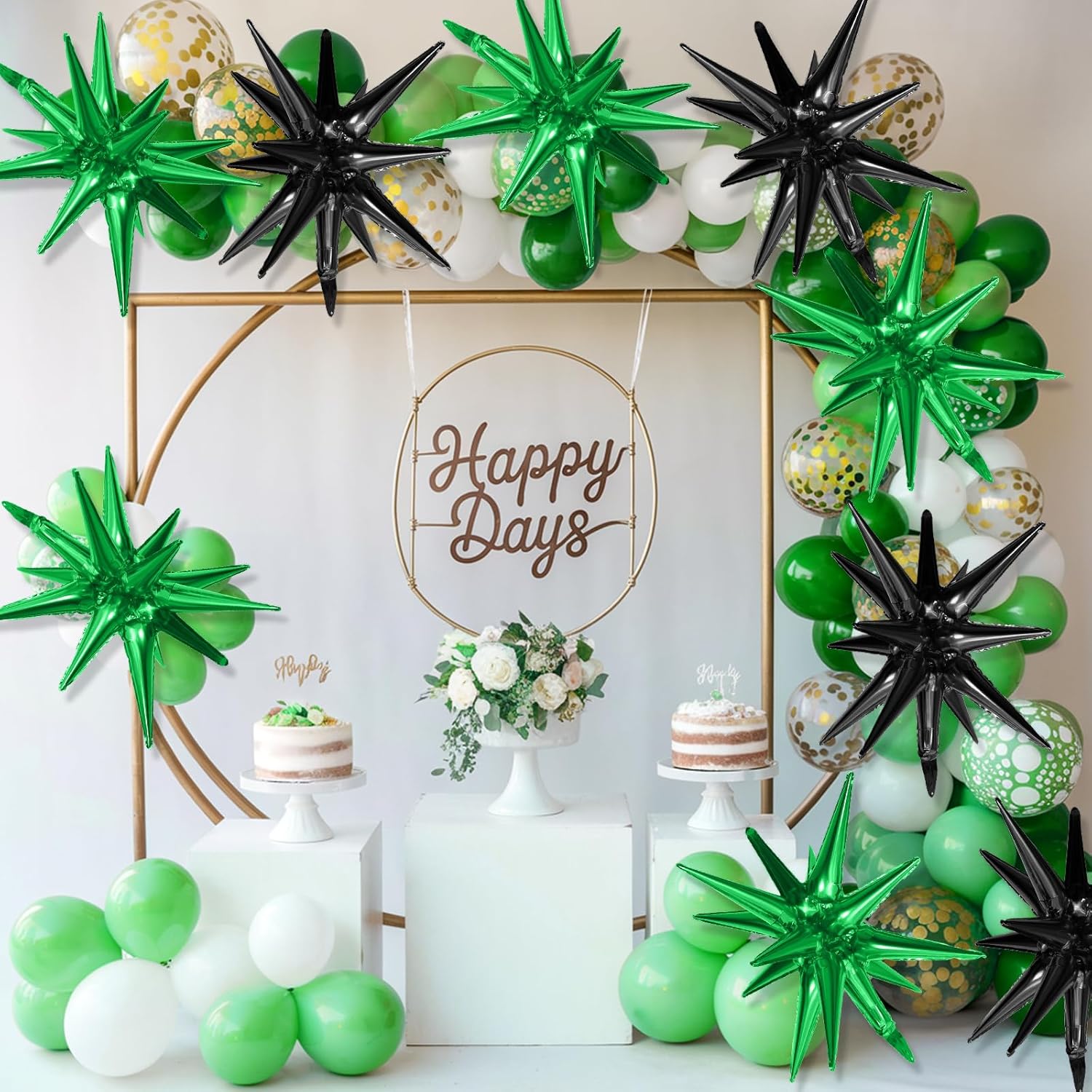 - Widely Application:Our black green star balloon set are great for birthday,new year,anniversaries,graduation,baby shower,opening events,engagement,disco party and all kinds of theme party,can be decorated indoors or outdoors,great party decorations choice!
