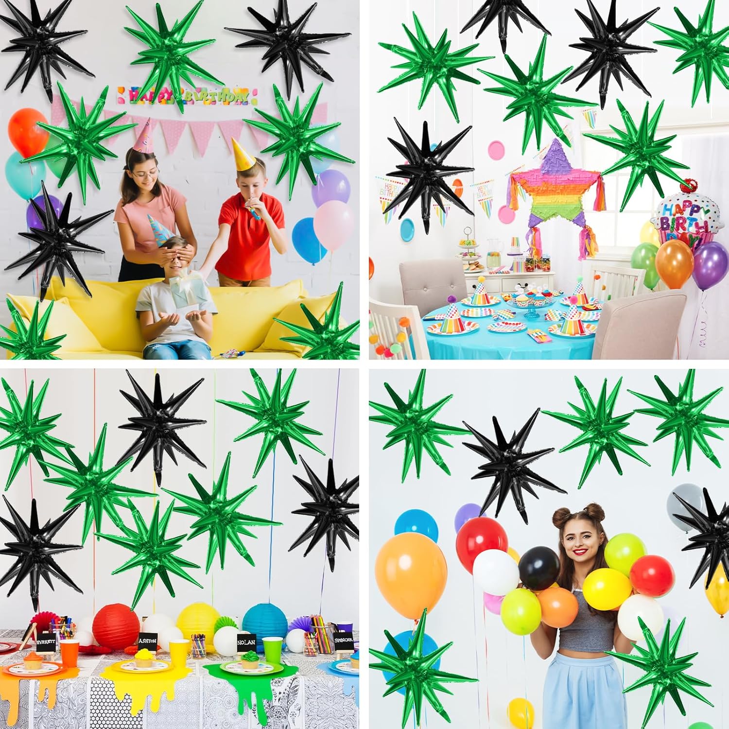 - Black Green Star Balloons Set:Package include 9pcs 22Inch explosion star balloons(black x 4,green x 5).Large enough to help you better decorate your party.