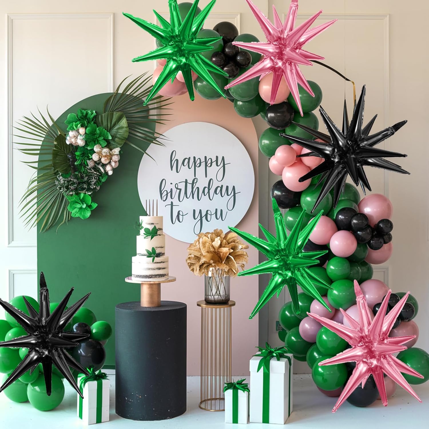 - Pink Green Black Star Balloons Set:Package include 9pcs 22Inch explosion star balloons(black x 3,green x 3,pink x 3).Large enough to help you better decorate your party.
