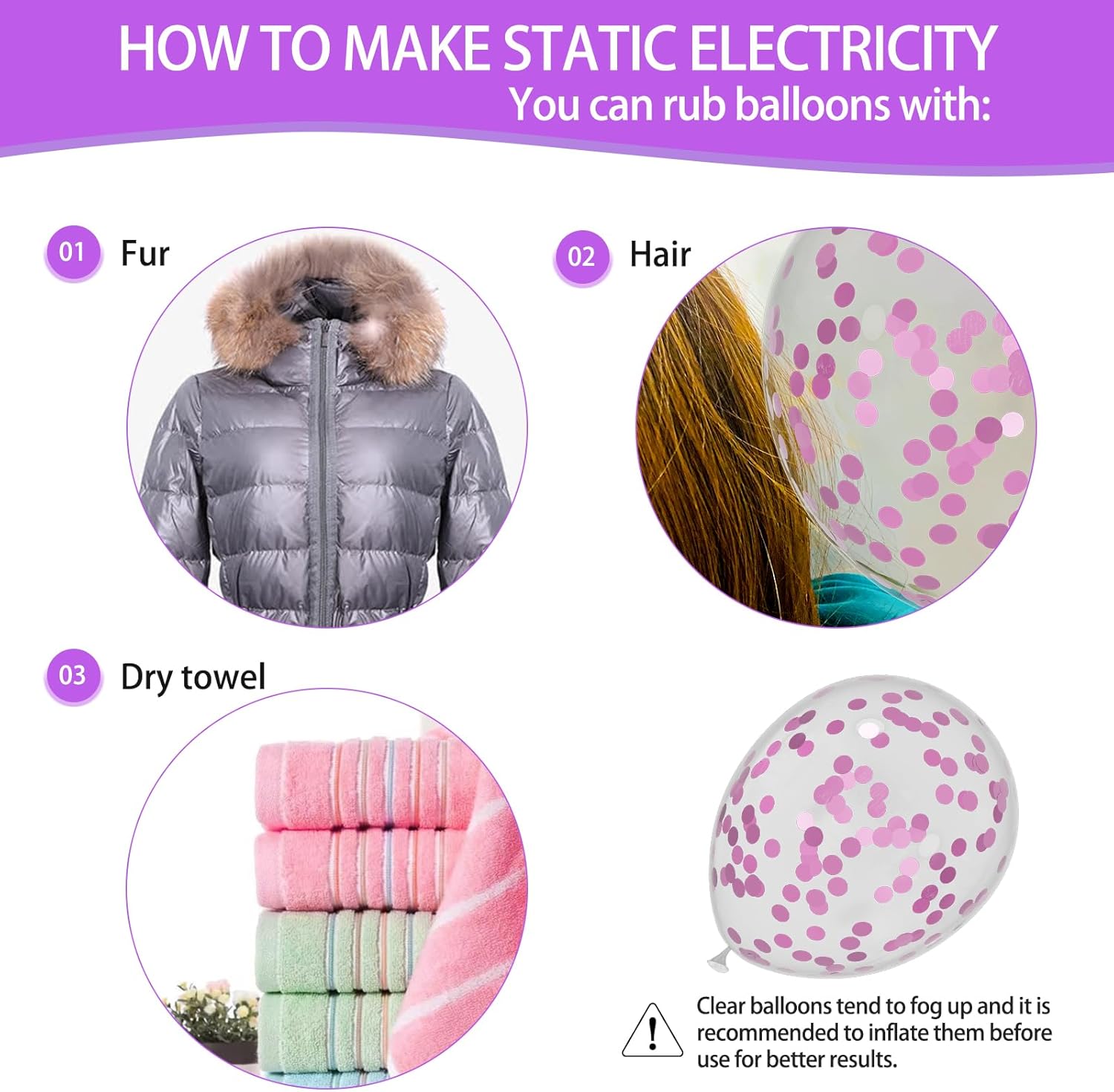 - 68 pieces of pink and purple balloons set is easy to create a dreamy scene. Contains 68 pieces of 12 inches latex balloons (including 16 pieces of macaron purple balloons, 16 pieces of macaron pink balloons, 8 pieces of metallic purple balloons, 8 pieces of metallic pink balloons, 10 pieces of purple confetti balloons, 10 pieces of pink confetti balloons, the additional ribbons in the package allows you to easily tie the balloons.