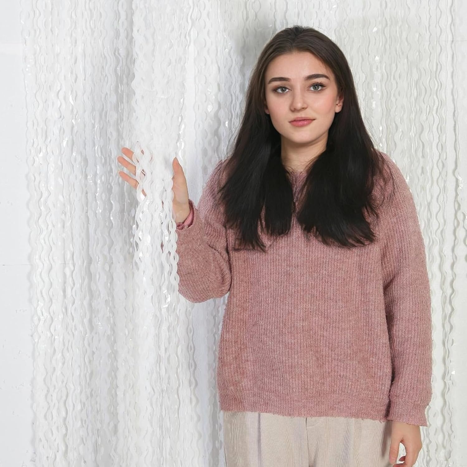 - Wavy Shape and Quality Material: The white metallic tinsel backdrop is made of aluminum foil with wavy shape,You can overlap or side by side the fringe backdrop make it more fuller and better look
