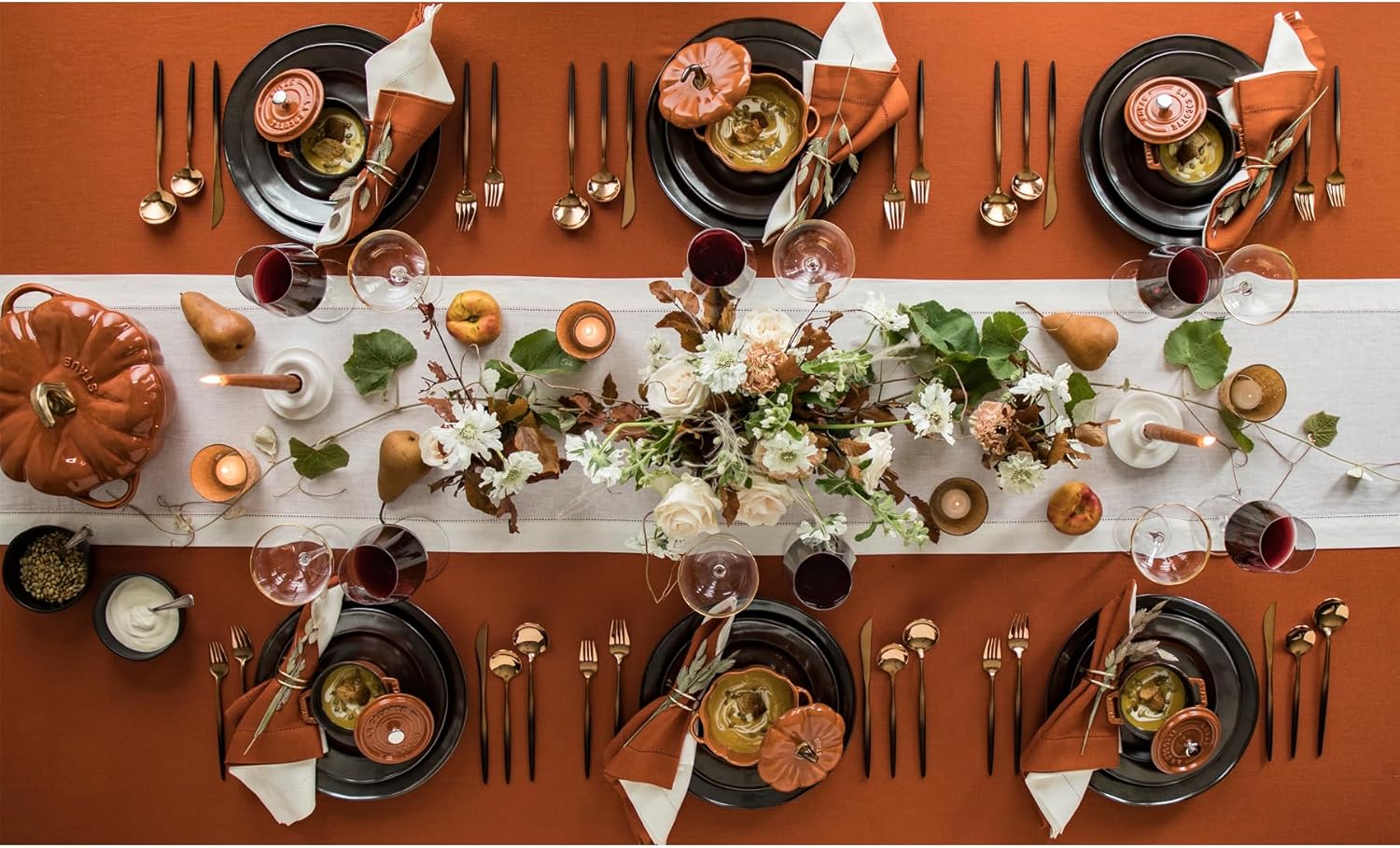 - 𝗖𝗼𝗺𝗽𝗼𝘀𝗶𝘁𝗶𝗼𝗻 𝗮𝗻𝗱 𝗖𝗿𝗮𝗳𝘁𝘀𝗺𝗮𝗻𝘀𝗵𝗶𝗽 : 100% Pure European Flax Linen Cinnamon Fall Tablecloth - 𝗖𝗹𝗮𝘀𝘀𝗶𝗰 𝗛𝗲𝗺𝘀𝘁𝗶𝘁𝗰𝗵 | Handcrafted By Skilled Artisans.