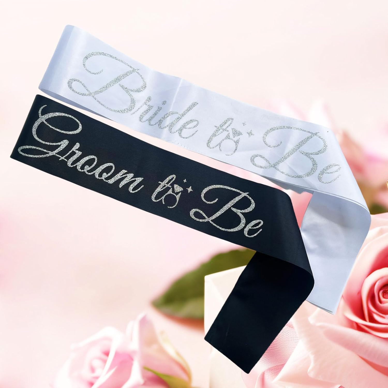 - You will get 1pcs white bride sash with silver glitter letters,1pcs black groom sash with silver glitter letters, perfect for bride party decoration