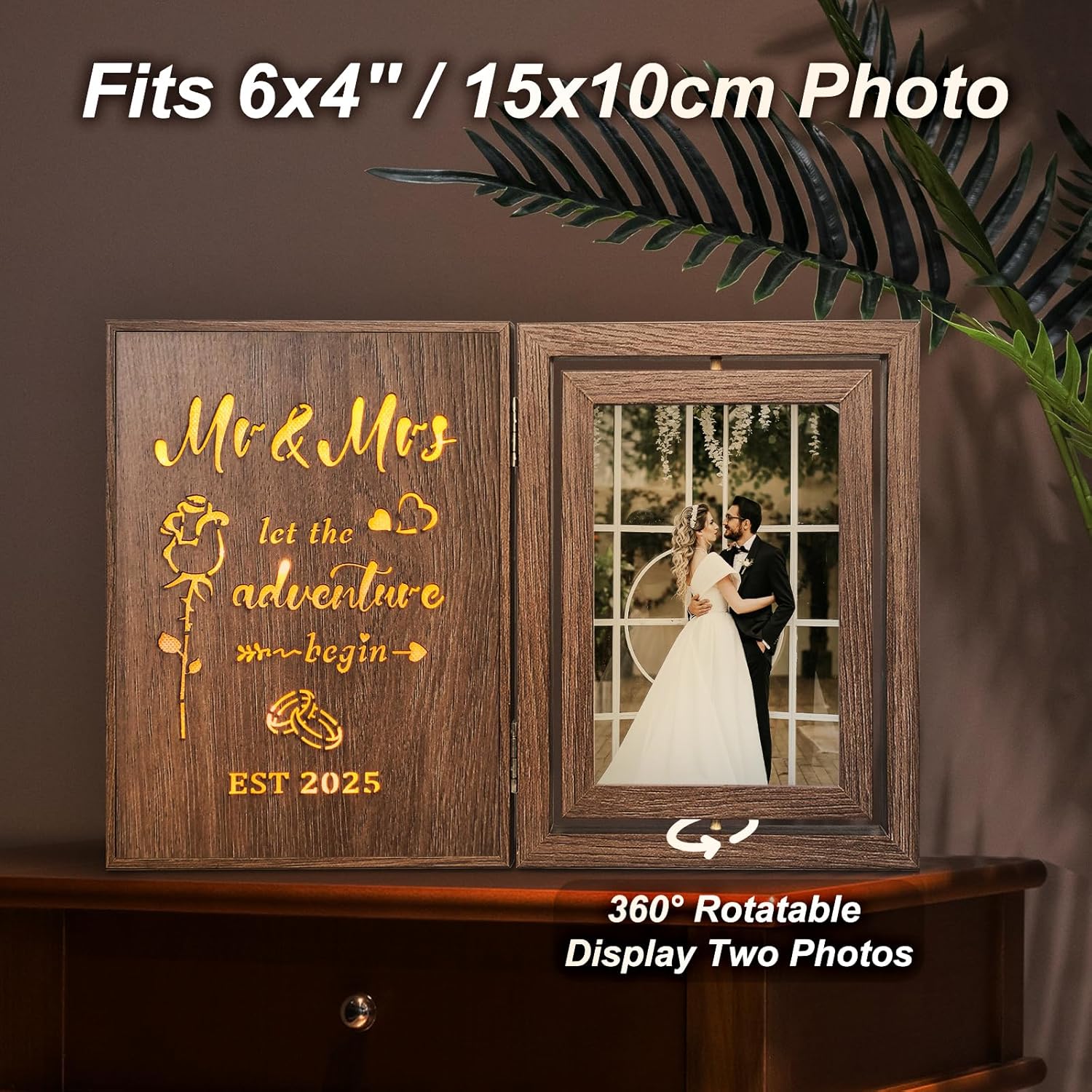 - 【Light Up Their Special Day】With the glowing message "Mr & Mrs - Let the adventure begin - EST 2025", this 2 x AAA battery-powered frame (batteries not included) creates a magical atmosphere for bridal gifts and bride and groom gifts