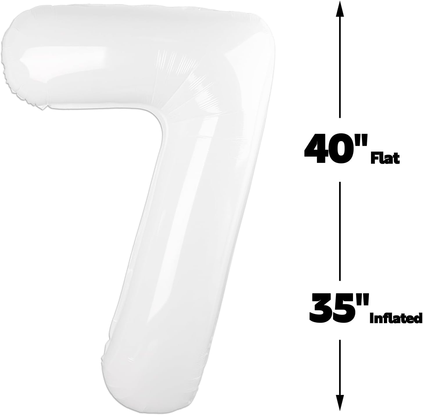 - 1.Noble Romantic White Number Balloons: You will receive an uninflated 40 inch white number 7 balloon. Balloons are always the best statement of romance surprise. Big seven balloon symbolize eternal magical, adding glamour to white birthday parties. Elegant white and huge size make number 7 balloon a highlight of special parties. Choose one or more numbers from 0-9 number balloon, and use 7 17 27 37 47 57 67 70 71 72 77 87 97 balloon numbers to create a lively charming party!