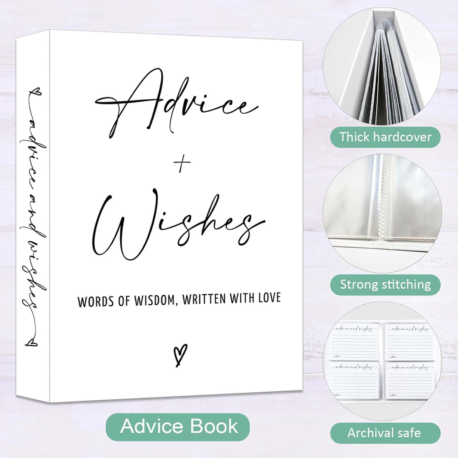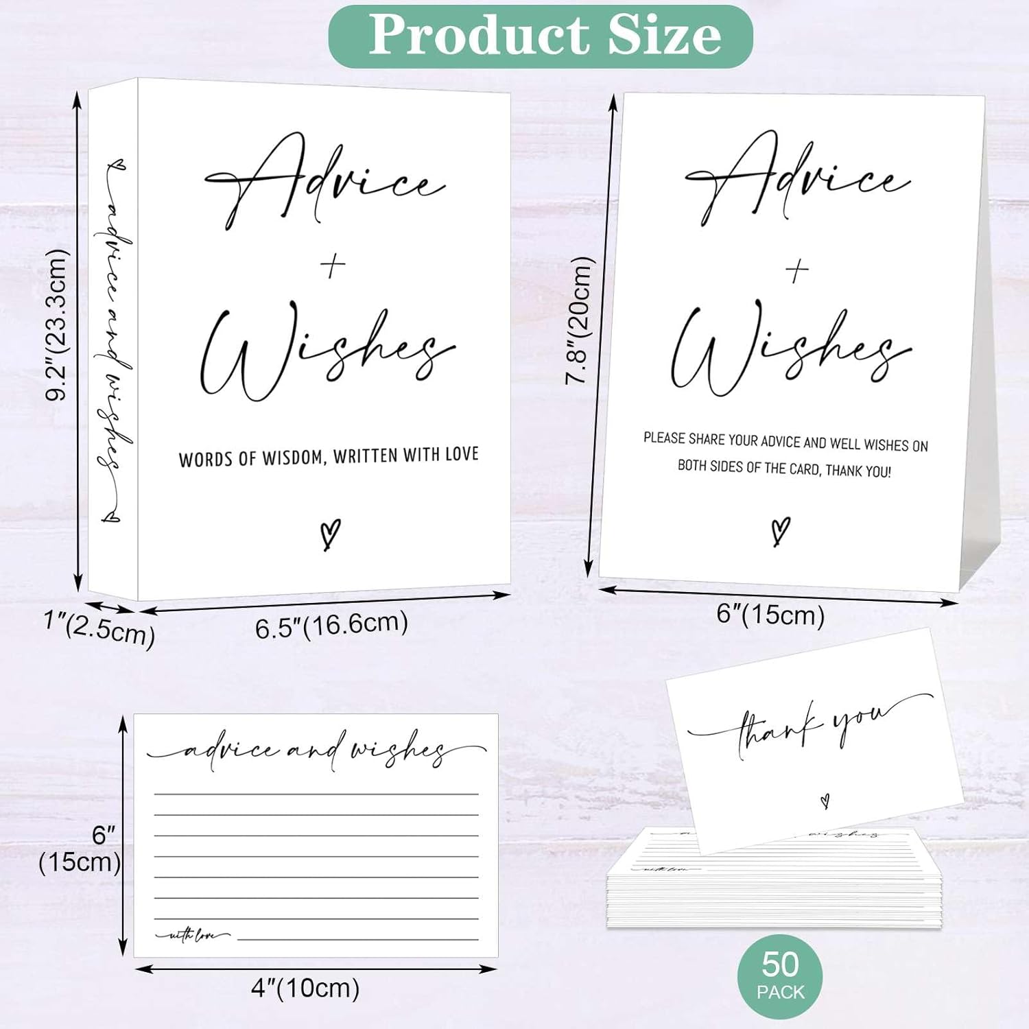 - Package Includes - The advice album set comes with 50 advice and wishes cards(4 x 6 in), 1 advice book album(9.2 x 6.5 x 1 in) and 1 table sign(7.8 x 6 in) to guide guests seamlessly, nice way to collect advice and wishes from guests.
