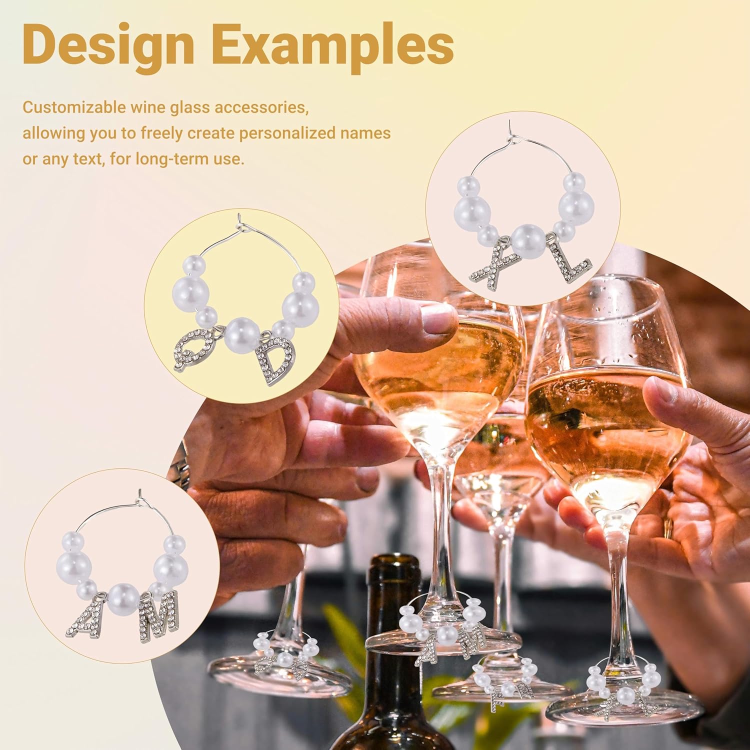 - DIY Wine Charms Kit: Includes 52 silver rhinestone letter beads + 50 silver-tone hoops, paired with 300 pearl pendants (approx. 200 pcs 0.2-inch + 100 pcs 0.3-inch) for sparkling brilliance. Spell names or initials to create personalized drinkware accessories