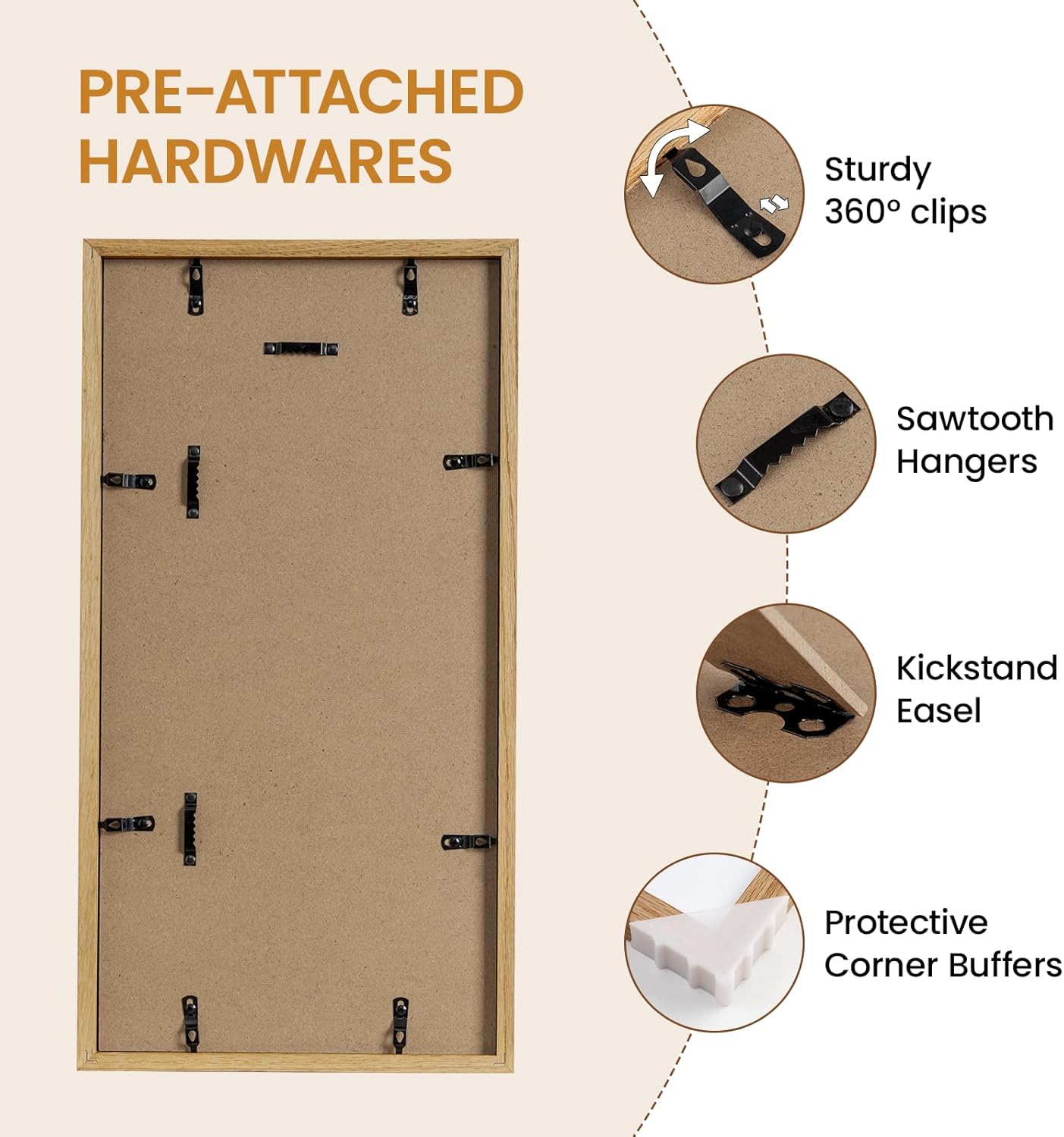 - 【Perfect Decoration】9"x18" oak wood picture frames are suitable for homes,bedrooms,dining rooms,offices, game rooms and studies.Showcase your cherished moments with our 9 by 18 frame