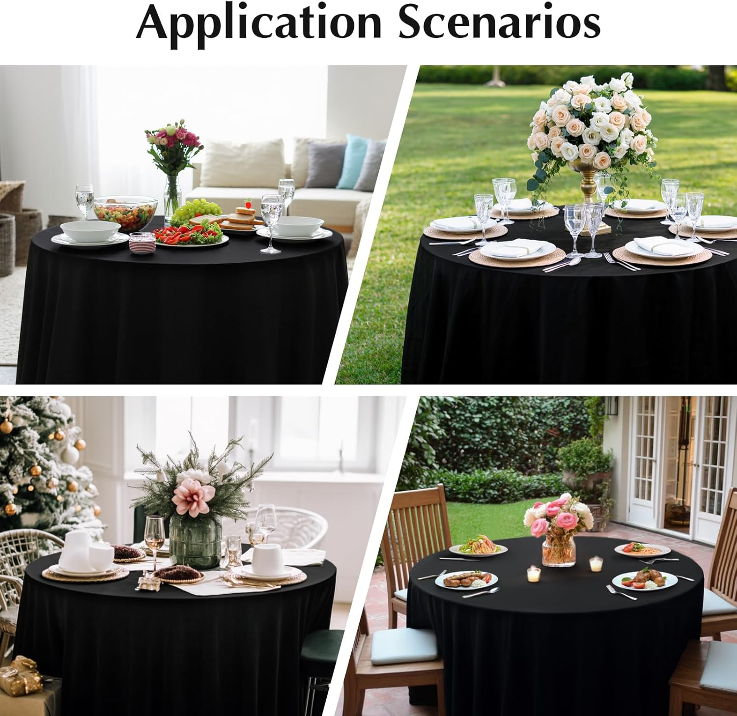 - Size Guide: Each package contains 2 PCS tablecloths. Each round black tablecloth is 48 inches, recommended for round tables from 24 inches to 32 inches, such as coffee tables, tea tables, kitchen tables, garden tables and other tables as long as they fit this modern table cloth, with a droop length about 8 inches to 12 inches. There may be a slight deviation due to manual tailoring