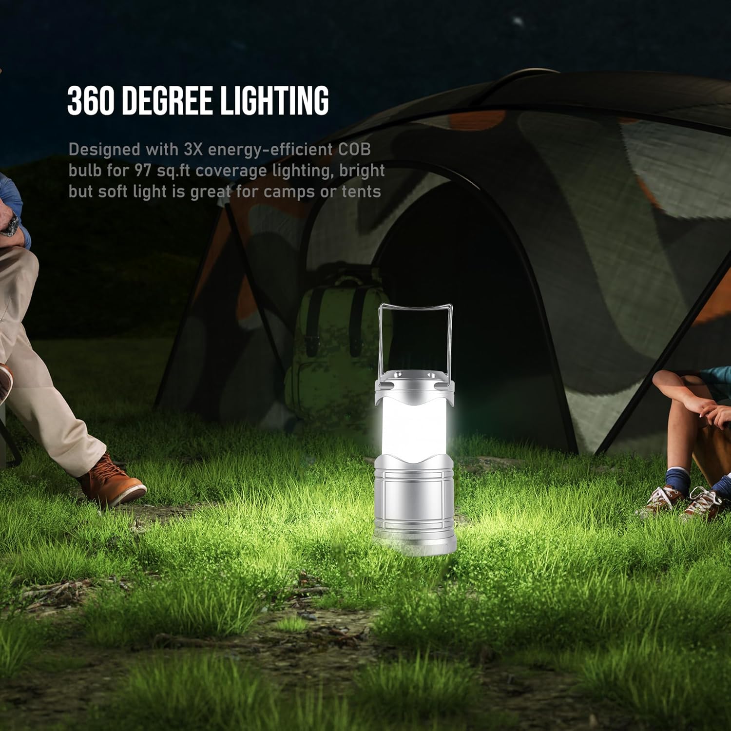 - ULTRA BRIGHT & SAFE: Designed with 30 energy-efficient LED for 360 degree lighting (97 sq.ft coverage), the latest COB technology features 350 lumens, emits softer and brighter light than other LED lantern; Use 3 AA batteries (not included)