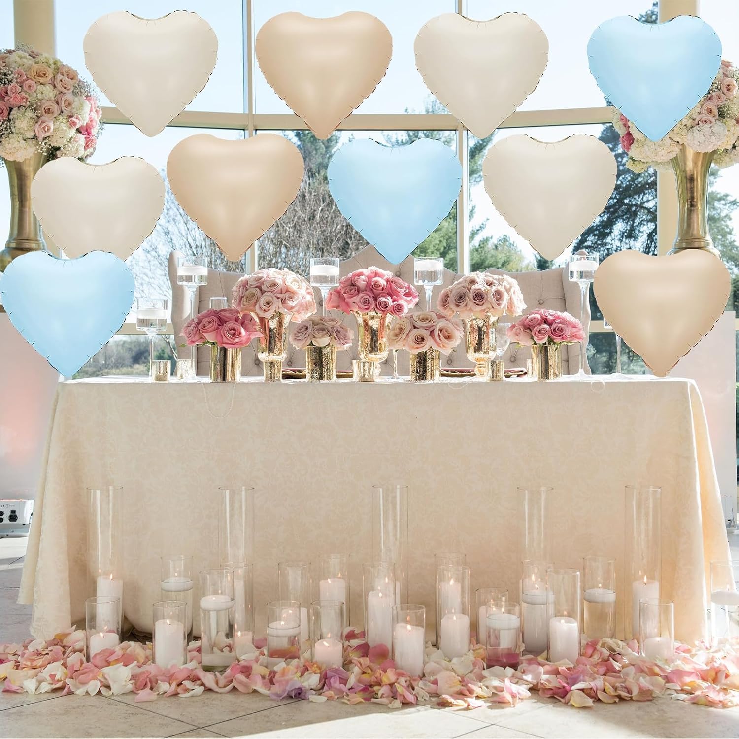 - WIDELY APPLICATION:This baby blue white beige heart balloon can be used for a variety of occasions,such as birthday,anniversary,Valentine's Day,Mother's Day,baby shower,gender reveal,weddings,engagement,bridal shower,marriage proposals and other parties,can also be used as a photo background,etc.Make a deep impression on the party guests.