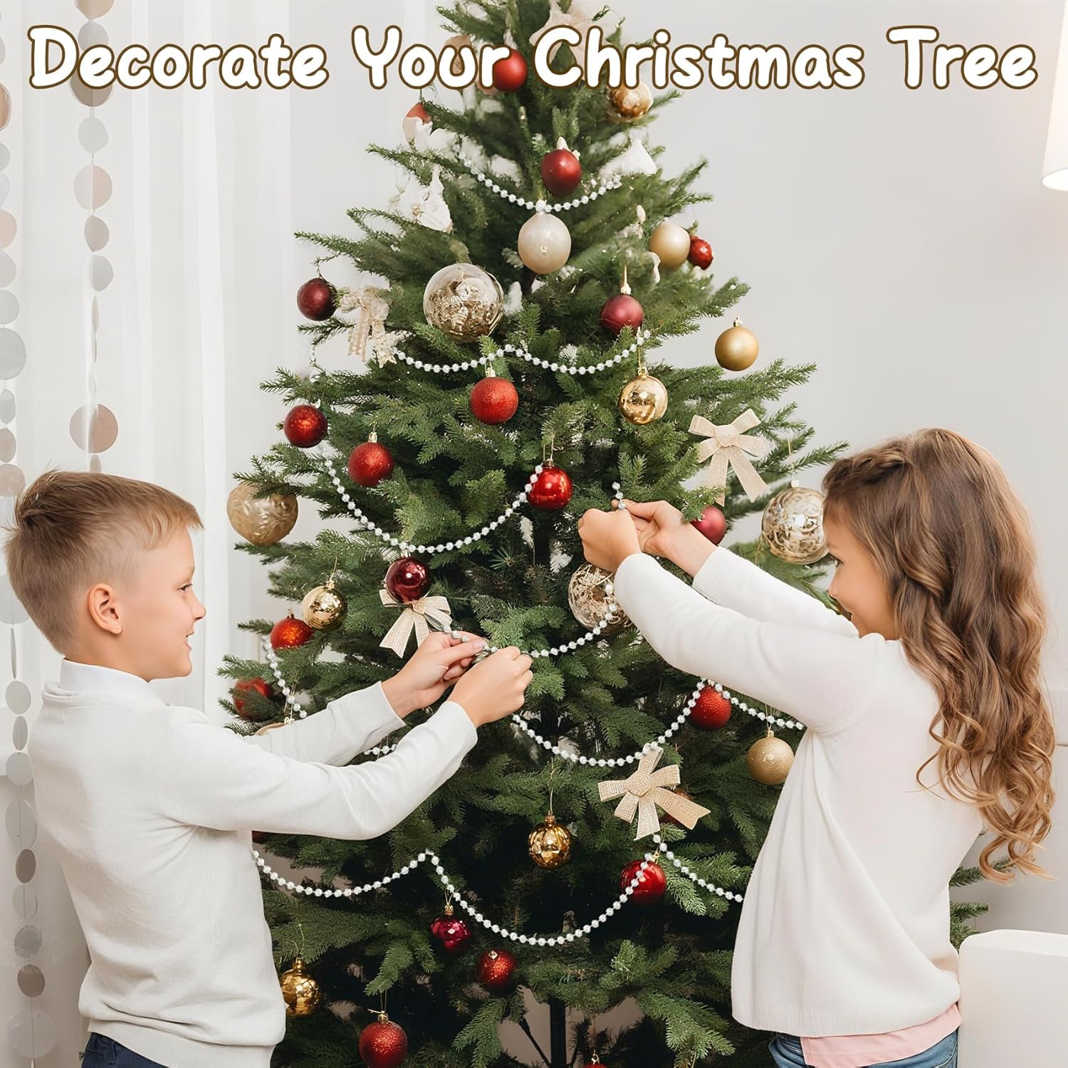 Pearl Beads Garland, 6 MM Clear Faux String of Pearls, Pearl Garland for Christmas Tree 82FT Pearl Beads Strand Spool Bead Roll for Crafts Floral Centerpieces Wedding Party Christmas Tree Decorations
