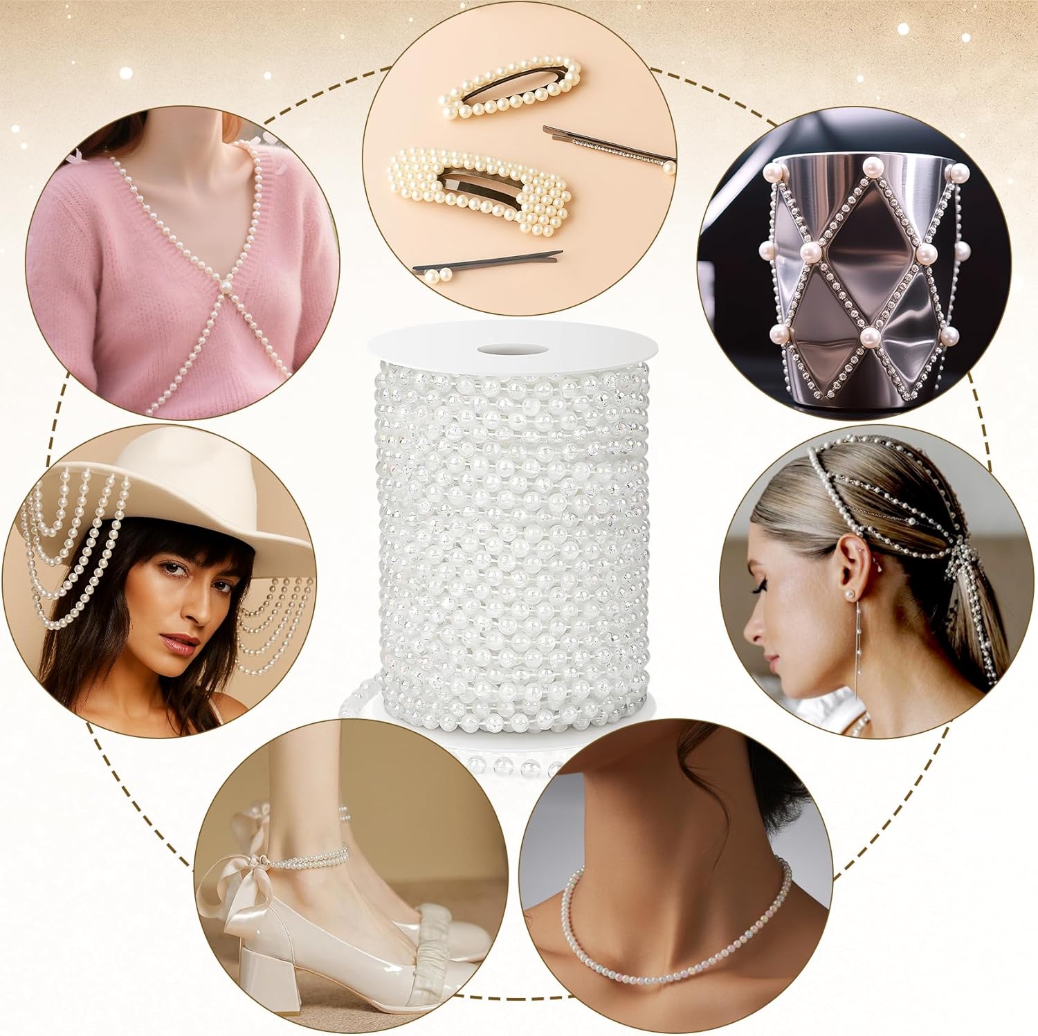 - Wide Applications: The pearl string is perfect for DIY crafts and decorations such as DIY jewellery, hair accessories, clothing, shoes, cards, scrapbooking, bridal bouquets, tiaras, wedding wreaths, wedding backdrops, flowers, porches, tables, chairs and more