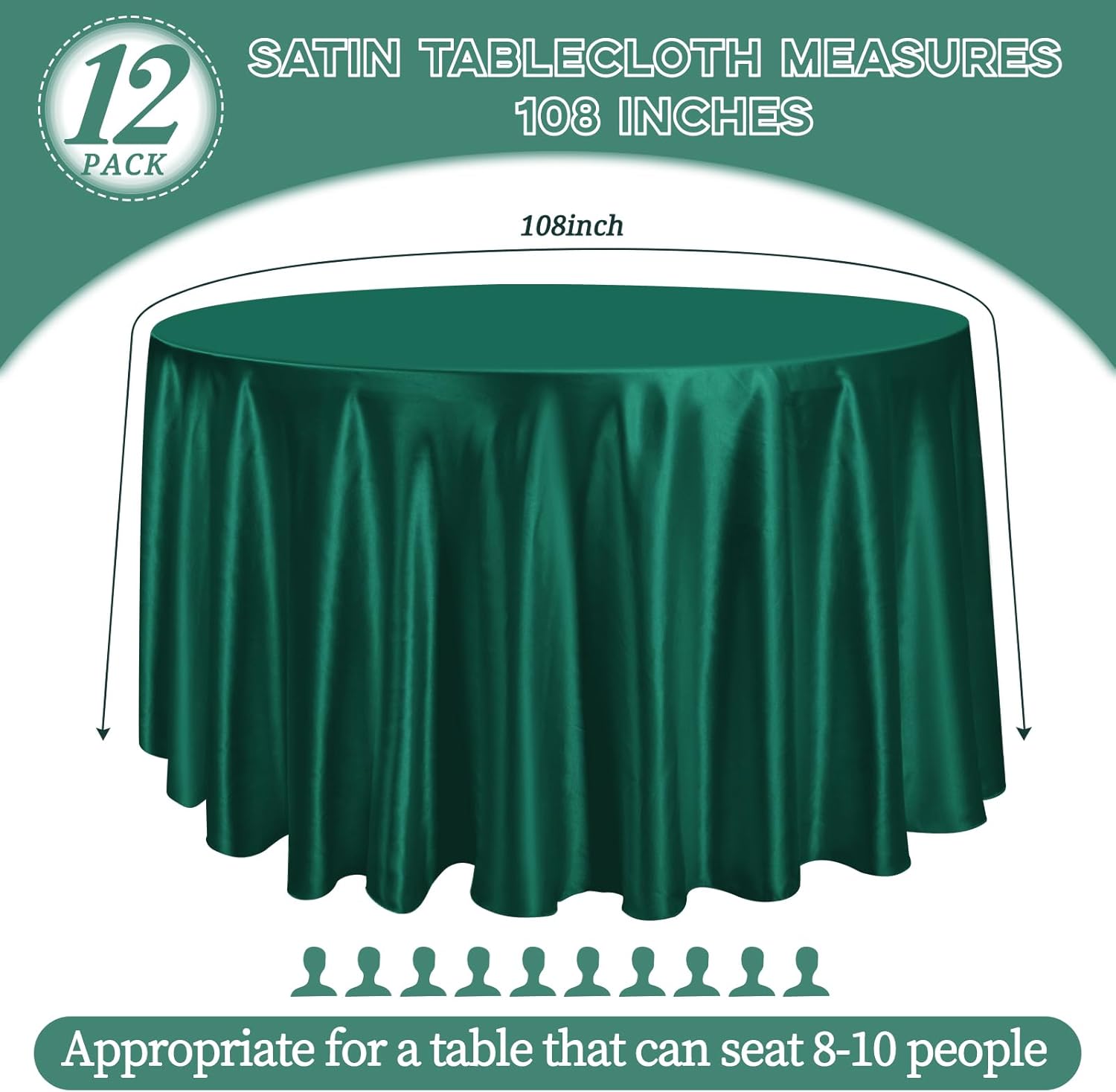 12 Pack 108 Inch Hunter Green Satin Tablecloth - Silky Round Tablecloth Overlay Smooth Fabric Table Cover, Bright Table Decoration for Wedding Party Banquet Events Restaurant Kitchen Dining