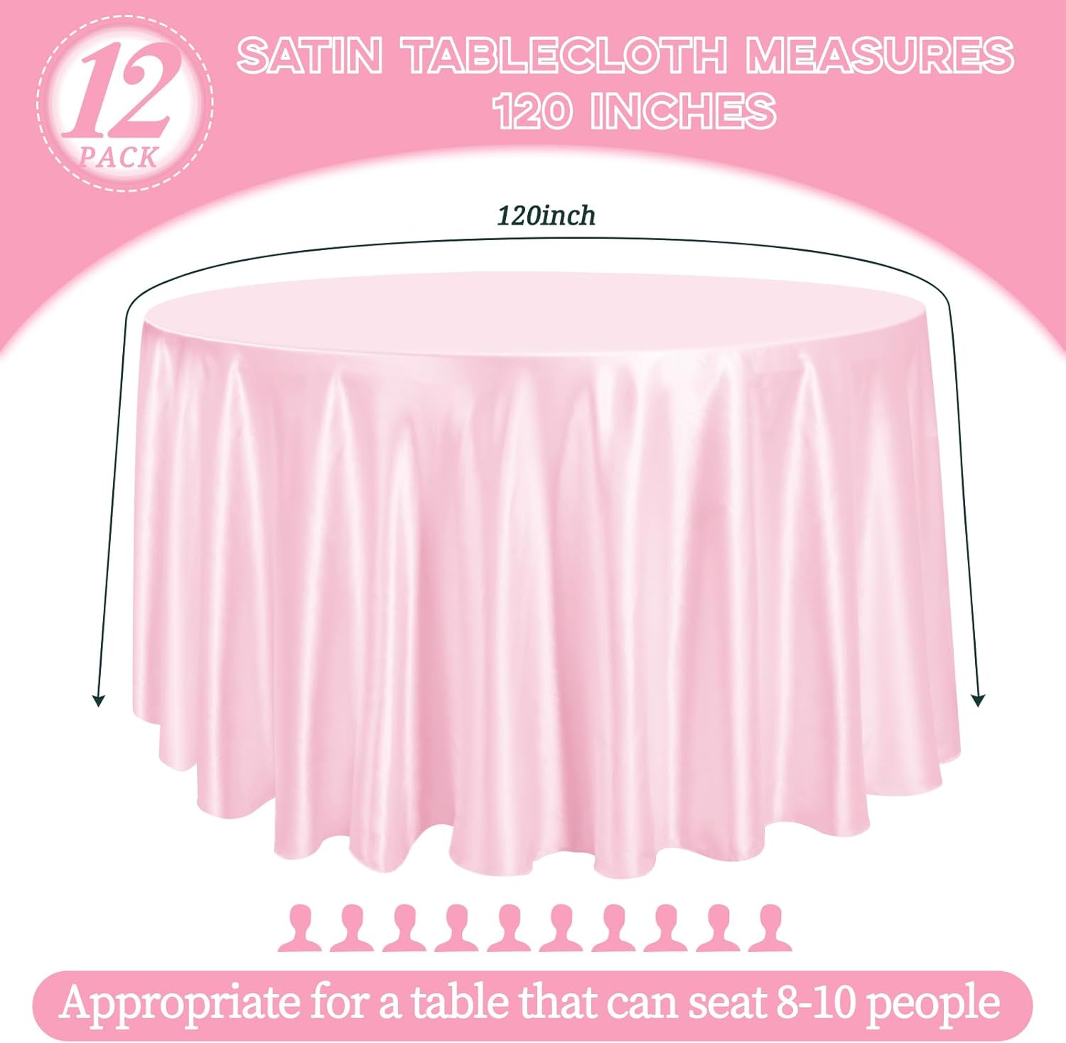 fani 12 Pack 120 Inch Light Pink Satin Tablecloth - Silky Round Tablecloth Overlay Smooth Fabric Table Cover, Bright Table Decoration for Wedding Party Banquet Events Restaurant Kitchen Dining