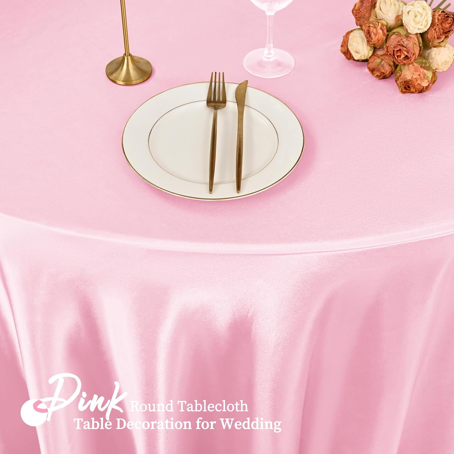 - 【Round Satin Tablecloths】12 Pieces premium light pink satin round tablecloth. The size of silk satin table cover is 120 inches, large enough to decorate a table that can accommodate 8-10 persons. It is suitable for most household round tables and can meet your different needs. Sufficient quantities are sufficient for party decoration. The tablecloth size is usually larger than your table size. Please measure your table size before buying.