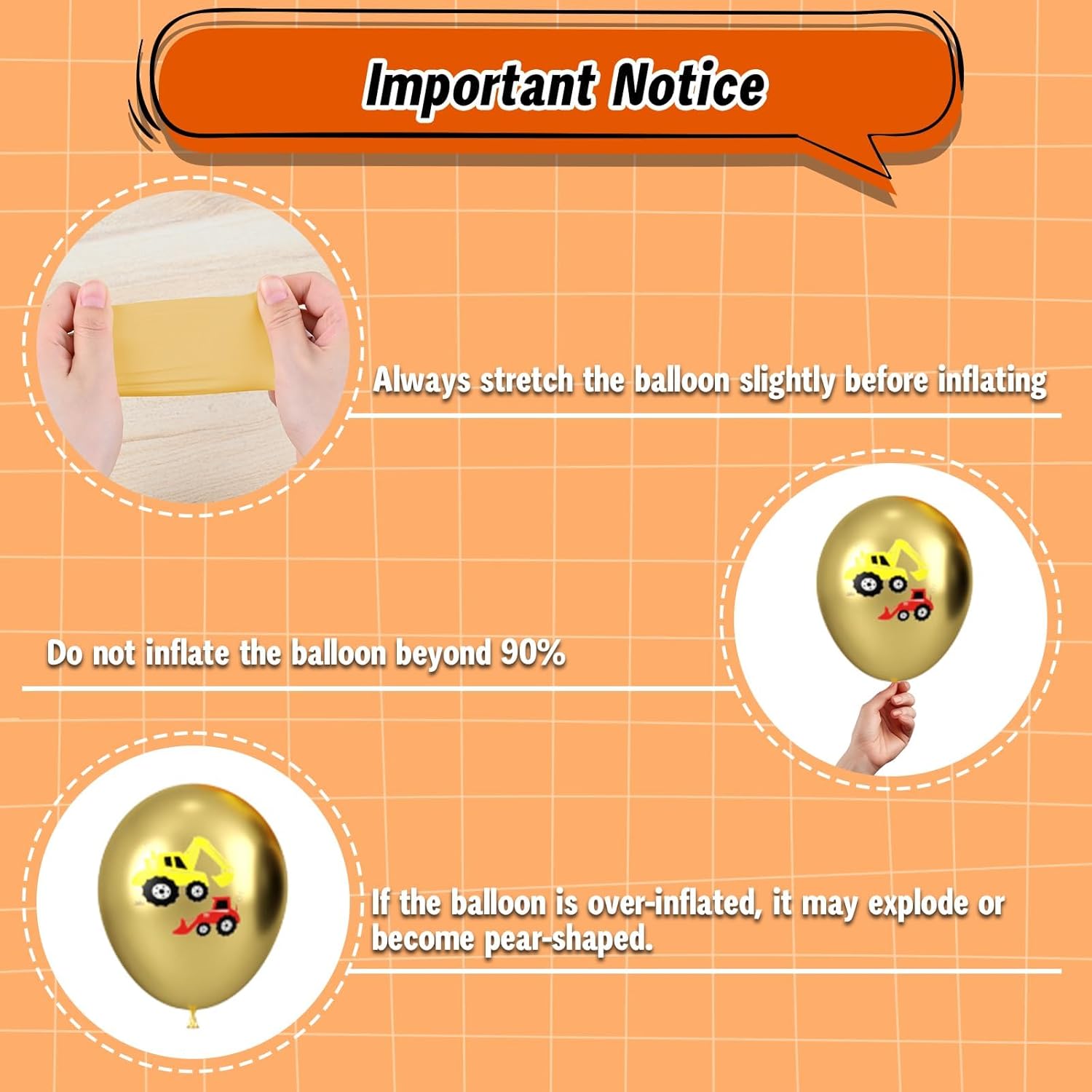 - 【Friendly Reminders】Keep yellow and black balloons away from sharp objects, rough surfaces, and direct sunlight to prevent damage. To ensure the balloons last, store unused balloons in a cool, dry place. We are always committed to providing outstanding balloons and party supplies. If you encounter any problems while using our construction birthday party supplies, our professional customer service team will be available to assist you at any time.
