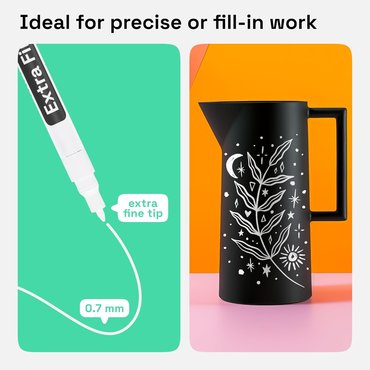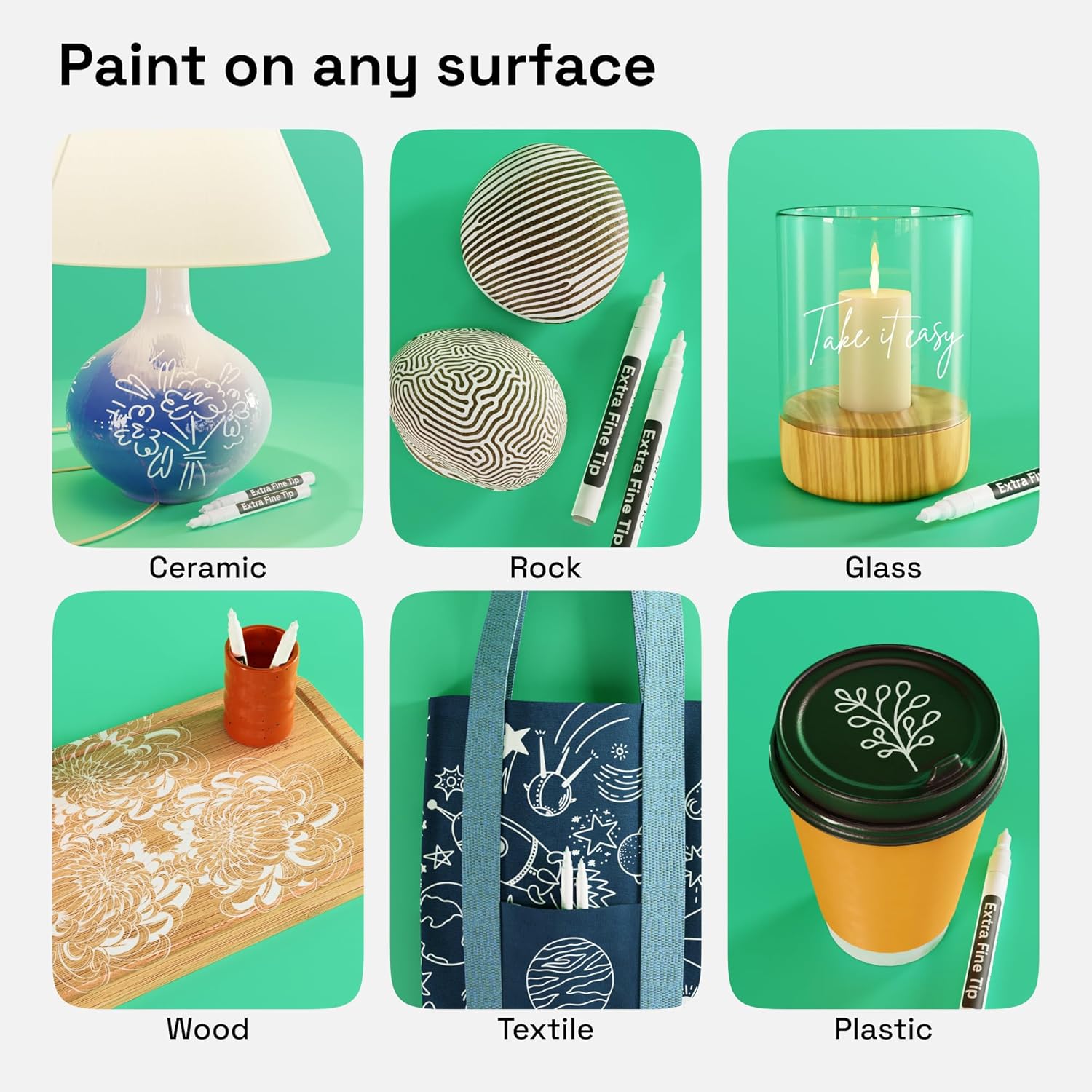 - Extra-Fine Tip: Each oil paint pen is made for fine line work. Detail your DIY project with these oil based pens. Each oil based paint marker will add some shine to your art, no matter the occasion – Christmas, birthday, or wedding decorations!