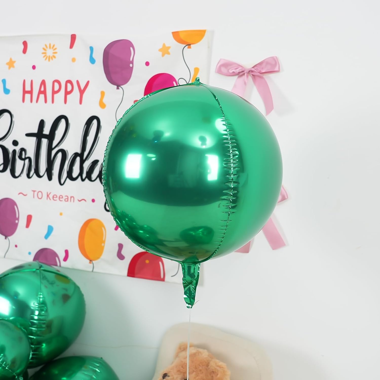 - Package: You will receive 12pcs 4D green round foil balloon, 3pcs 22inch + 4pcs 15inch + 5pcs 10inch + 1 straw + 1 roll of ribbon. Different sizes balloons in can meet your party needs. 10inch mini size balloons do not support helium filling and floating. The classic solid green chrome balloons are perfect for any green-themed party.